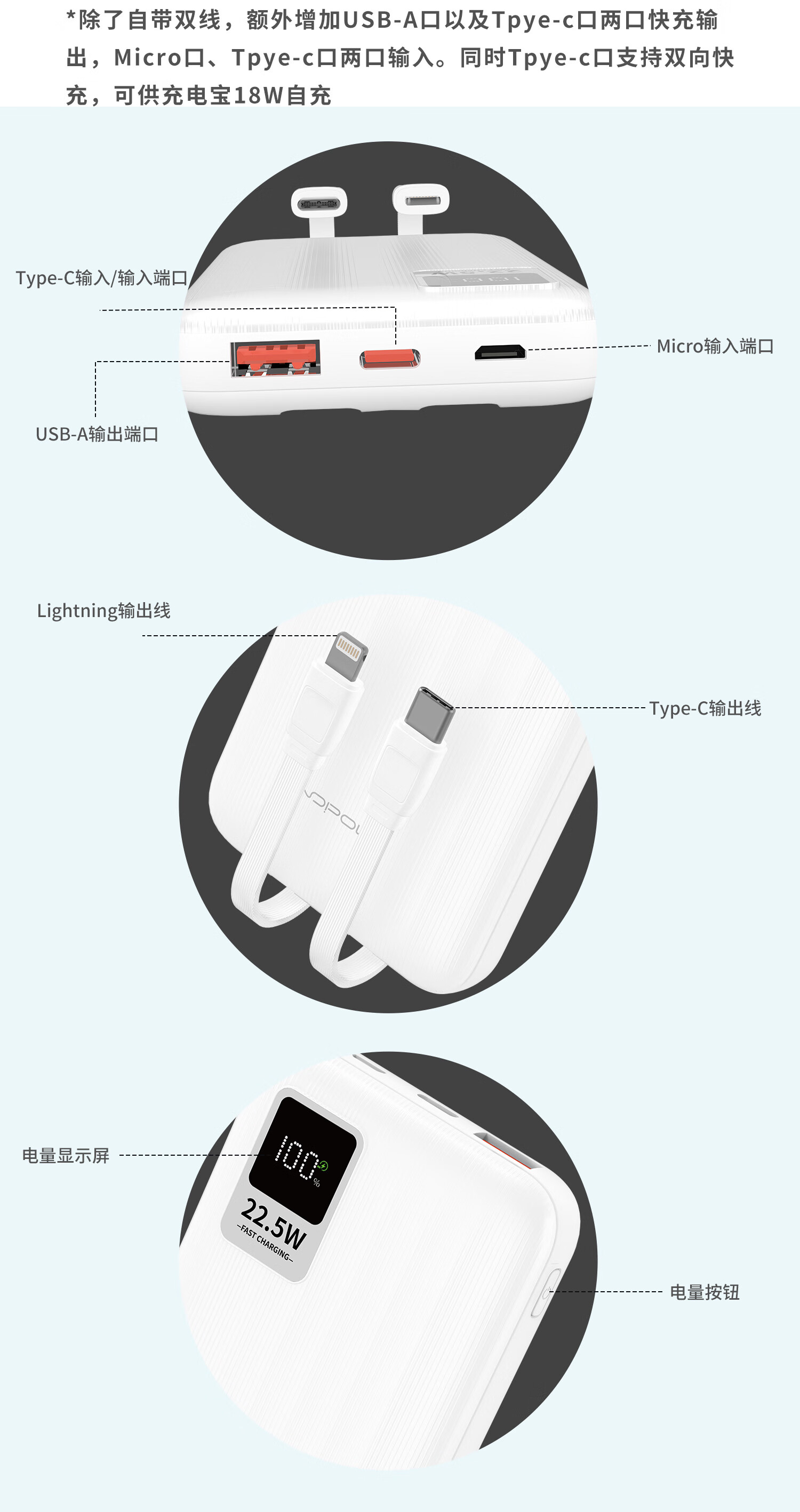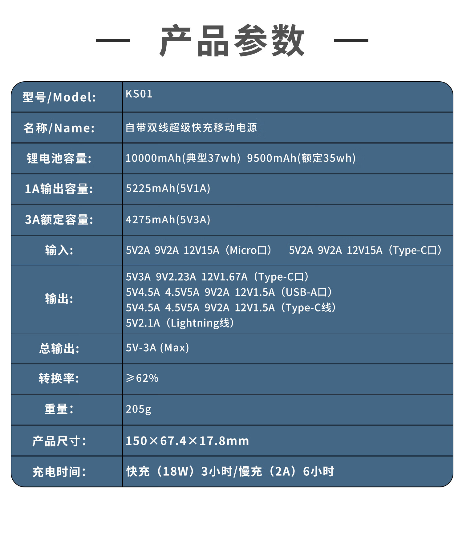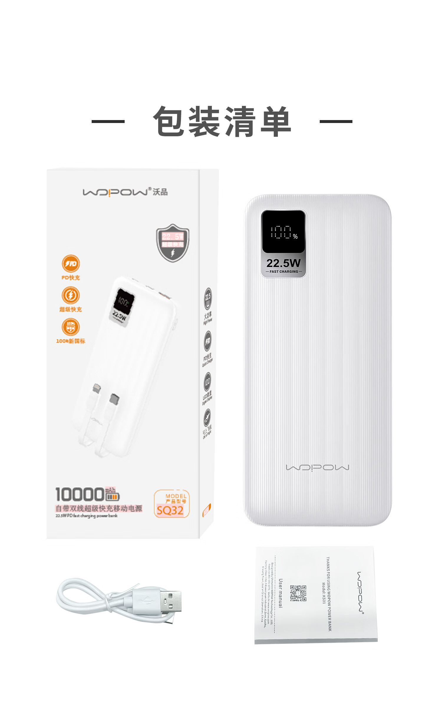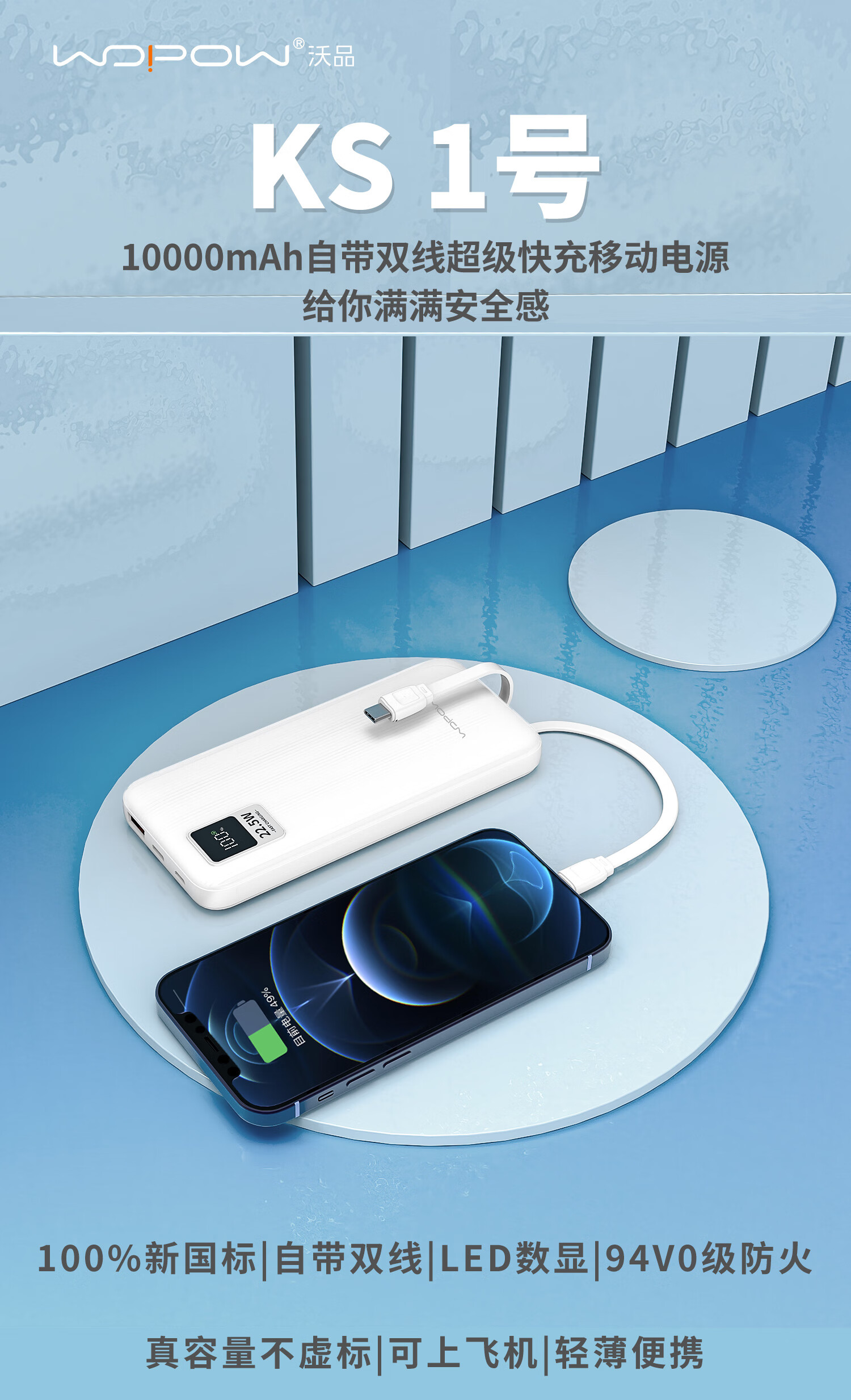 沃品 沃品10000mAh自带双线快充移动电源KS01 KS01