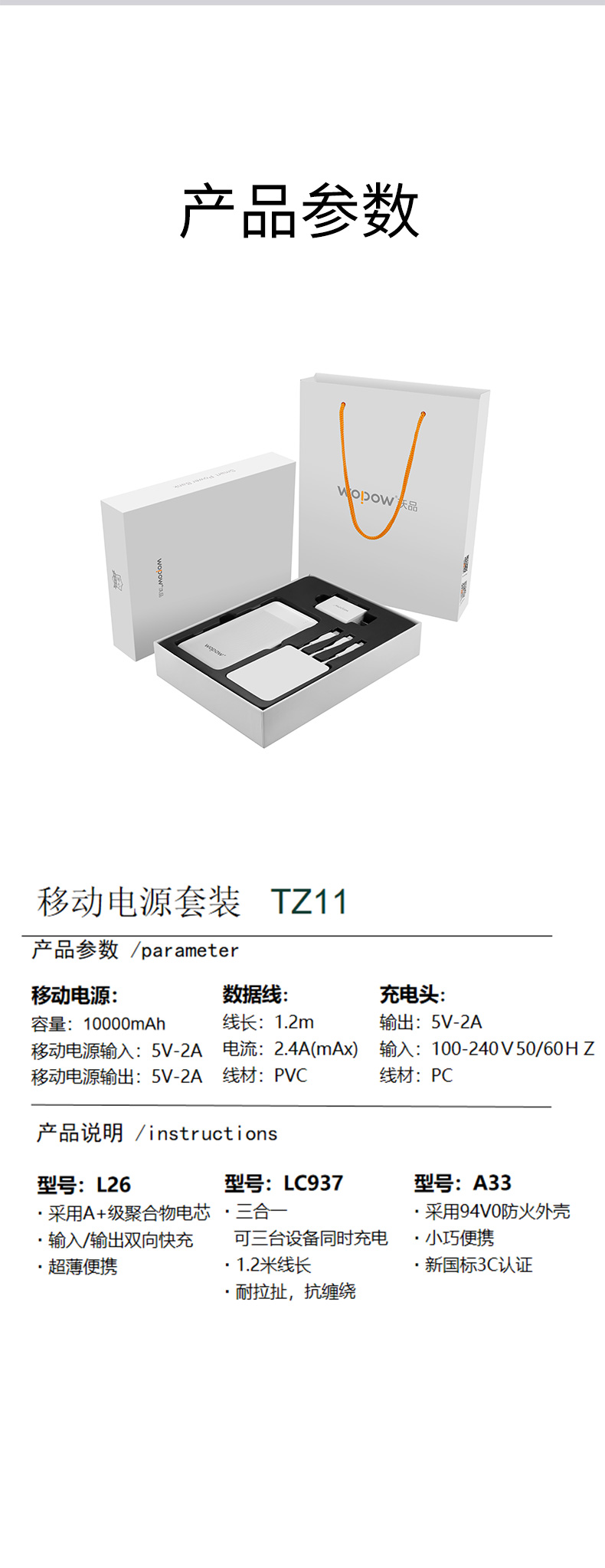 沃品移动电源套装TZ11 |