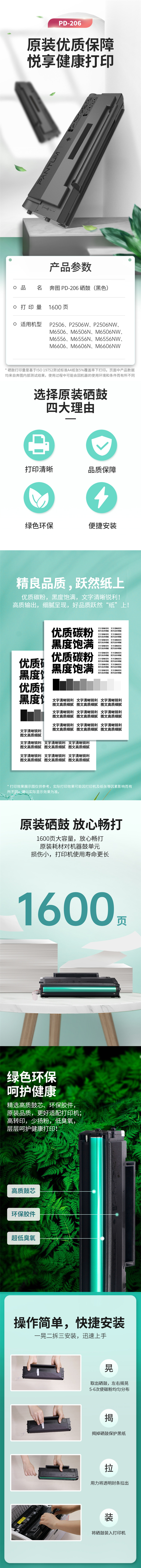 奔图 硒鼓黑色适用于P2506系列/M6506 系列/M6556系列/M6606系列打印机 PD-206
