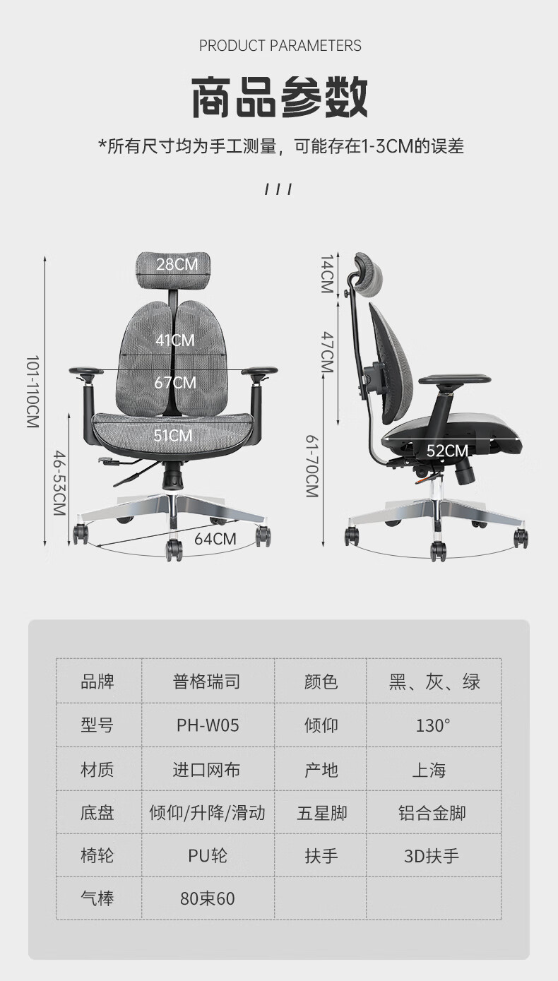 磷贝 人体工学椅PH-W05 1010-1100*640*520
