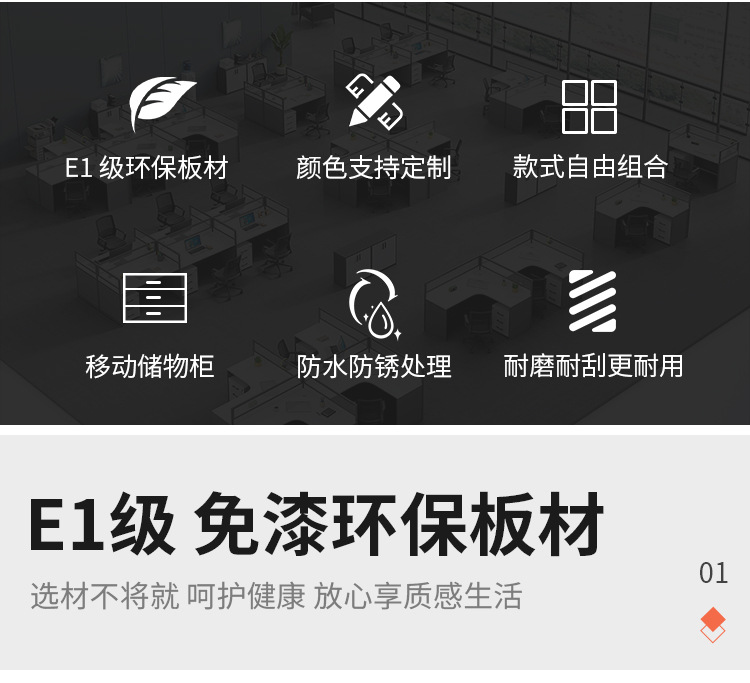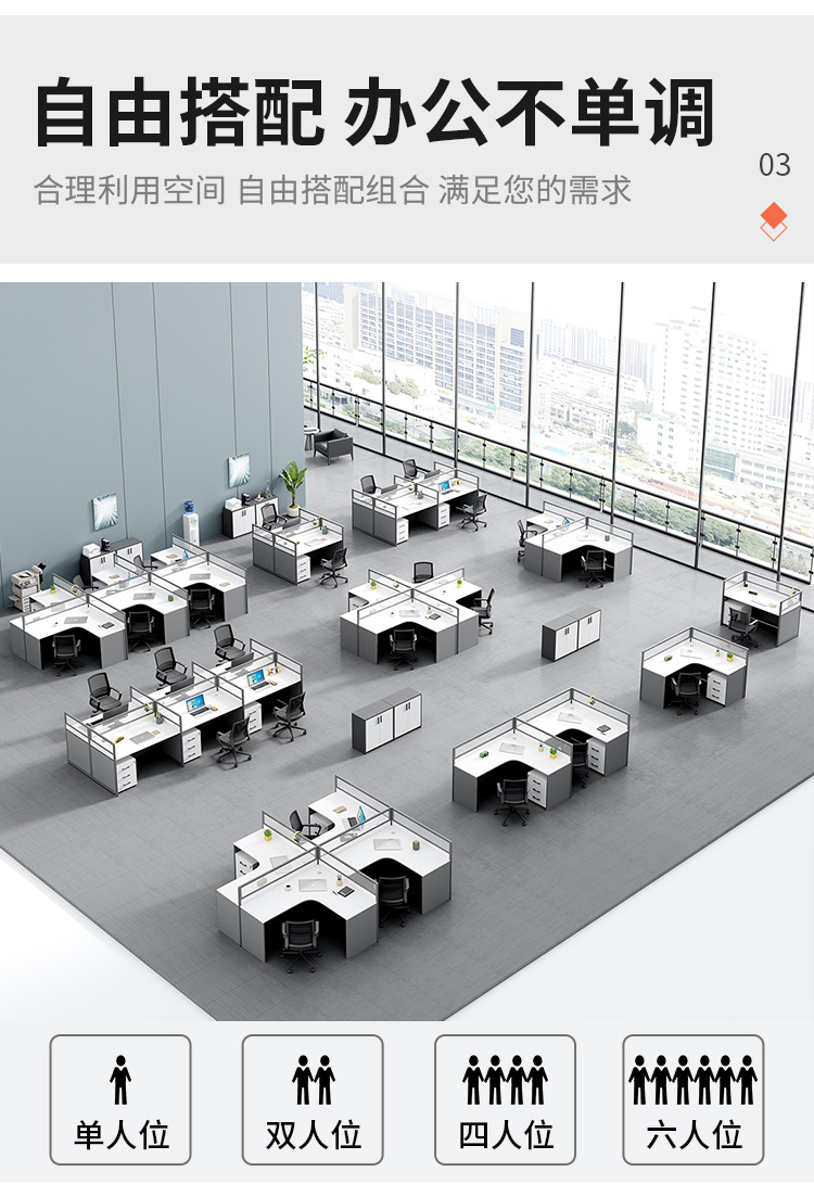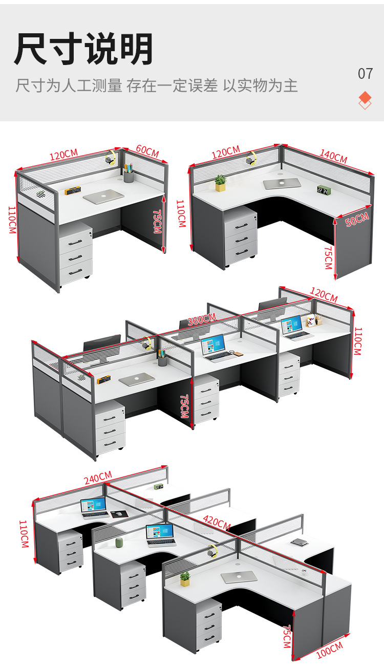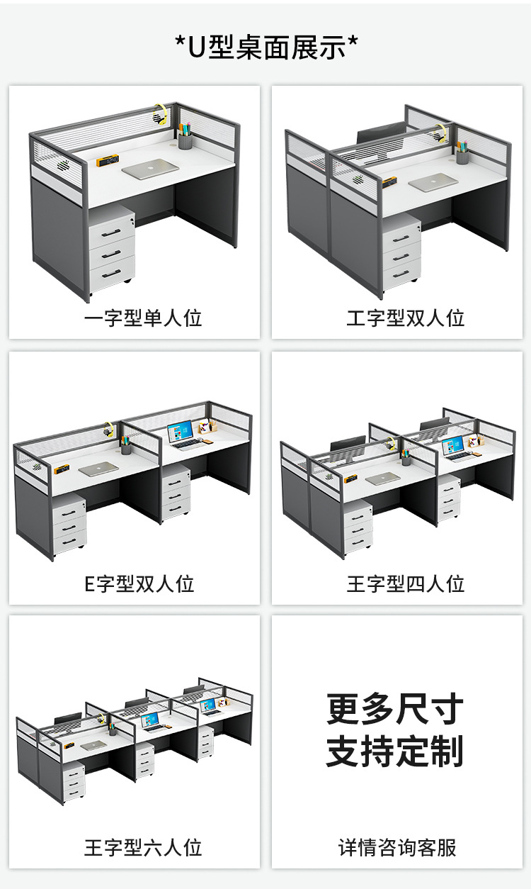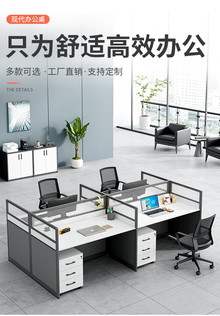 磷贝 四人位屏风工作位员工位办公桌 1100*2400*1200