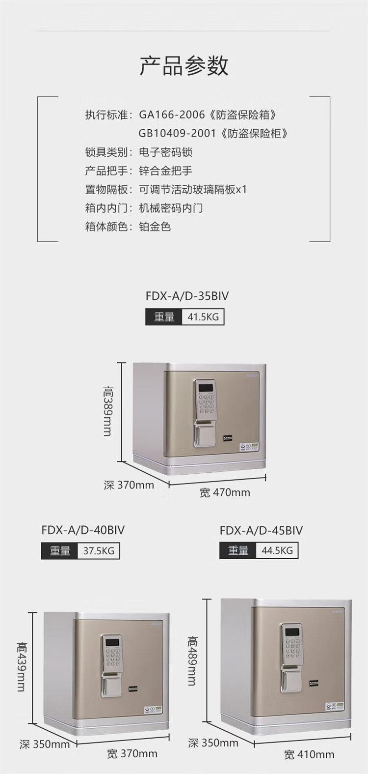 商品名称: FDX-A/D-35BIV铂金电子BIV系列保险箱保险柜