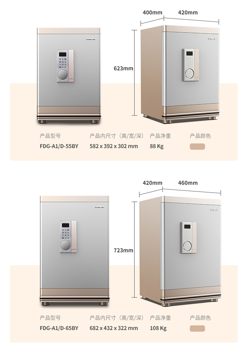 商品名称: FDG-A1/D-55BY铂雅BY系列保险箱保险柜