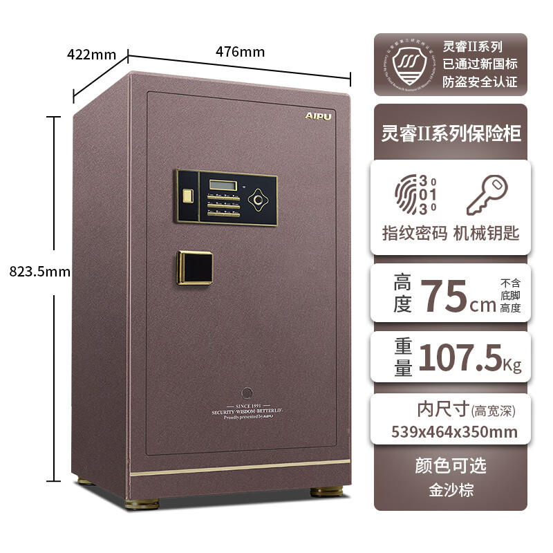 艾谱 FDG-A1/D-75LRZWII灵睿指纹电子LRZWII系列保险箱保险柜 823.5*476*422
