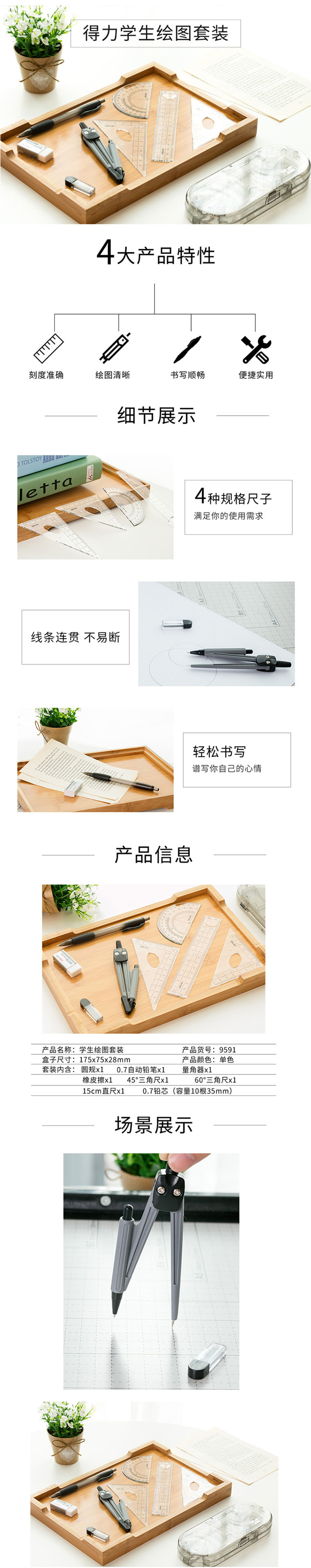 商品名称: 得力(deli) 9591 圆规套尺8件套 计价单位:套