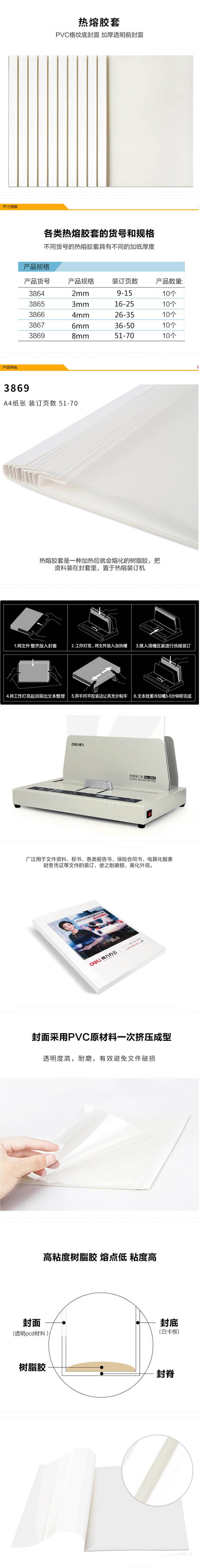 商品名称: 得力(deli) A4热熔封套 白色 (3869 8mm)