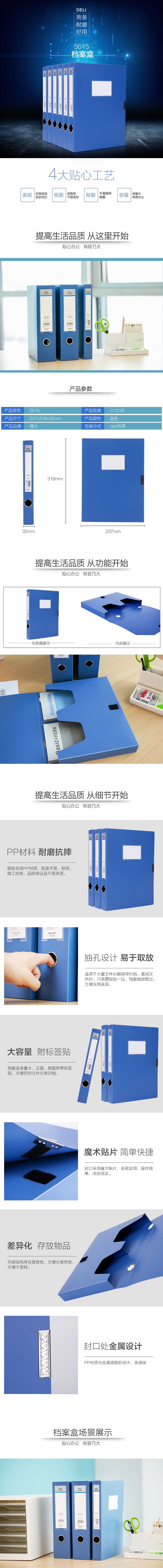 商品名称: 得力(deli) 5615 档案盒 237*318*35mm 蓝色