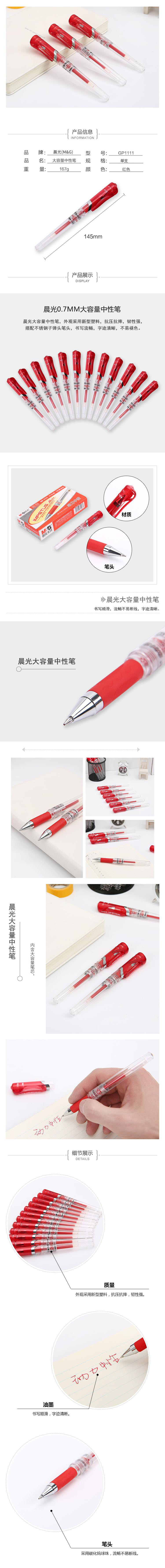 商品名称: 晨光(M&G) GP-1111 拔盖中性笔 0.7MM 红 12支/盒