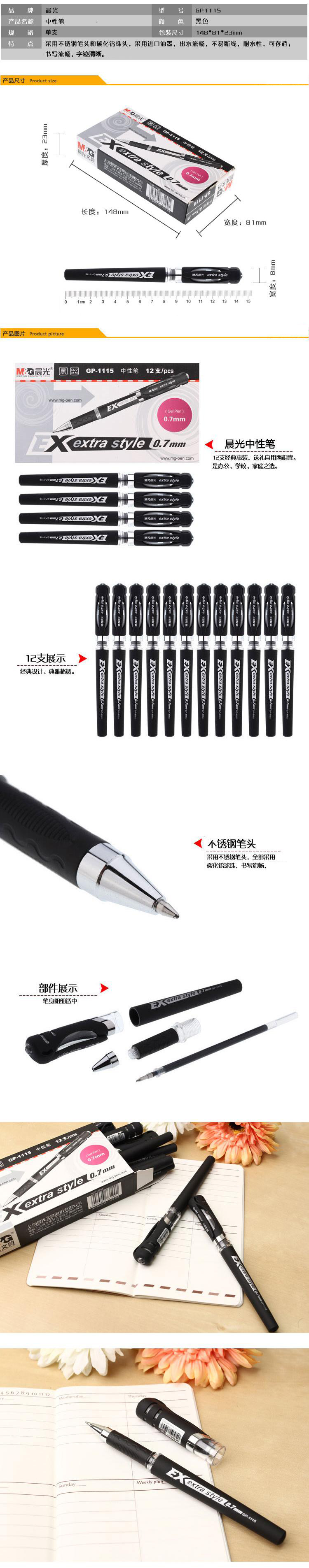 商品名称: 晨光(M&G)GP1115 粗笔画子弹头中性笔签字笔水笔0.7mm12支装 黑色