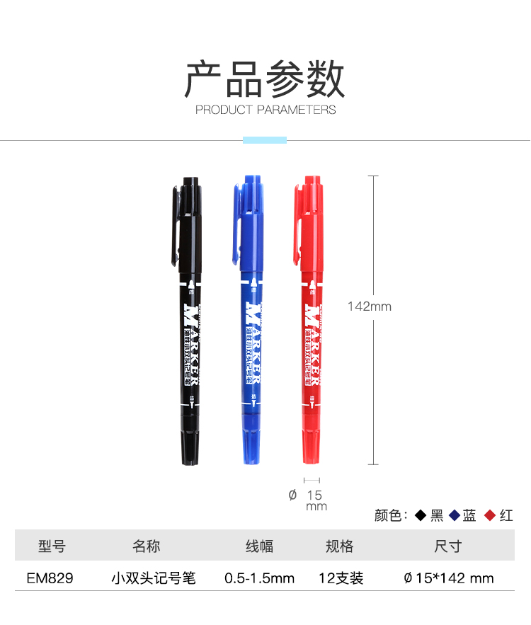 商品名称: 齐心(COMIX) MK804 黑色 小双头记号笔 12支/盒
