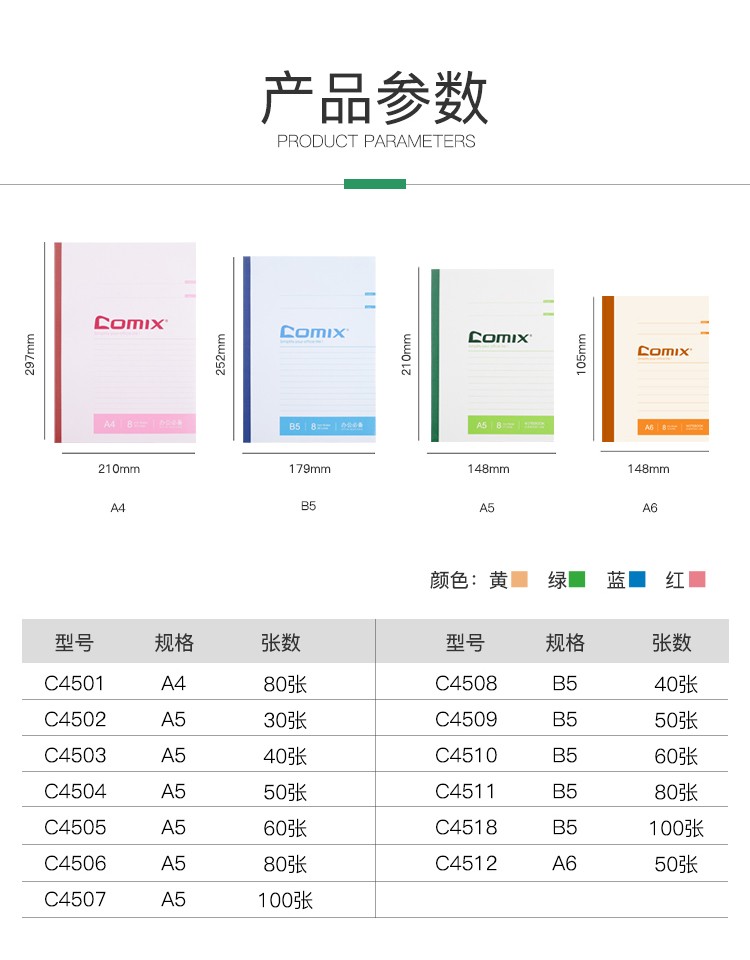 商品名称: 齐心(COMIX)C4507 无线装订本 A5 100页 6本装 配色