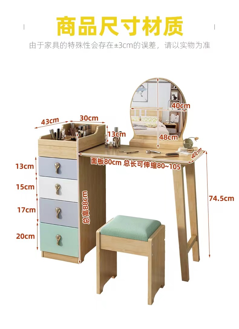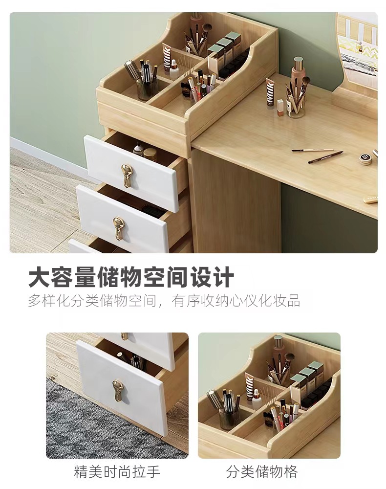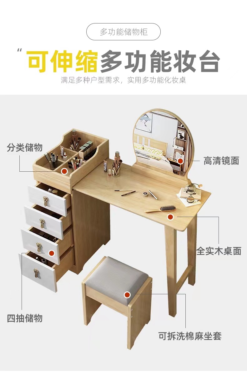 商品名称: 实木妆台卧室梳妆台化妆桌收纳柜一体化妆台