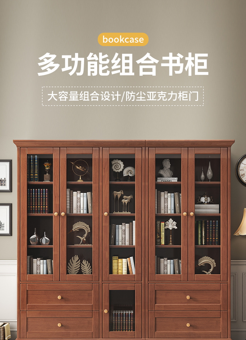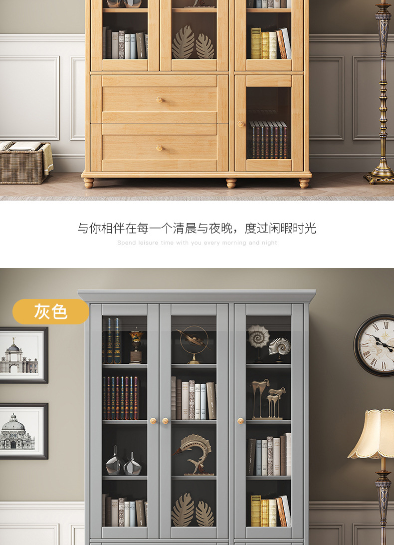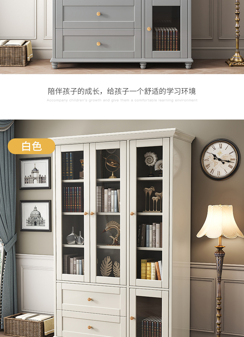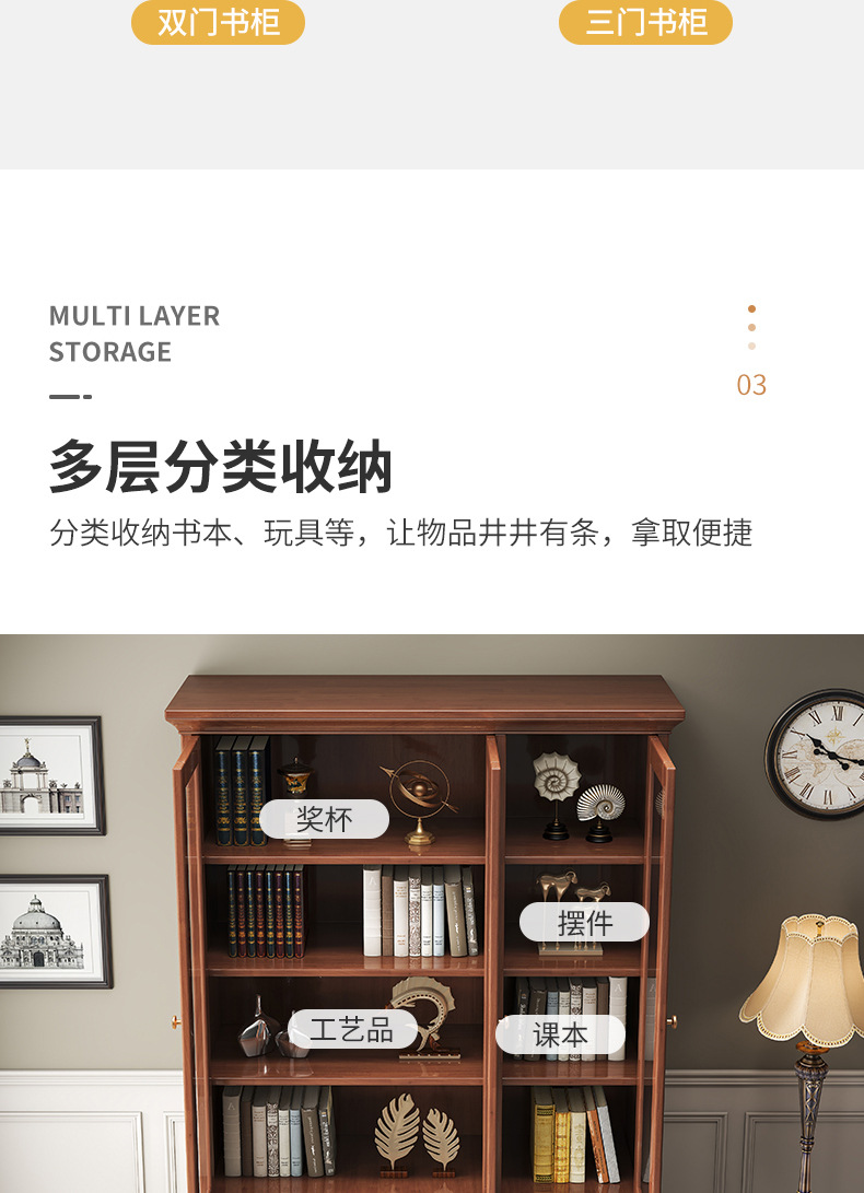 商品名称: 美式三门书柜落地置物柜储物收纳柜