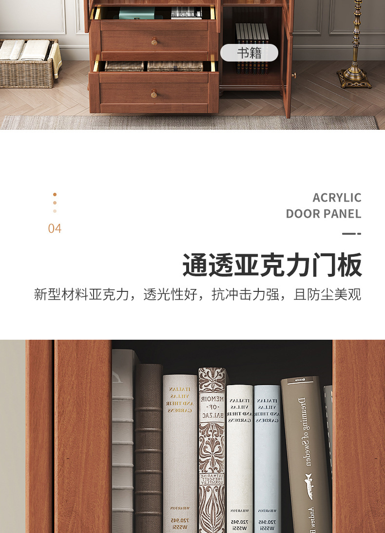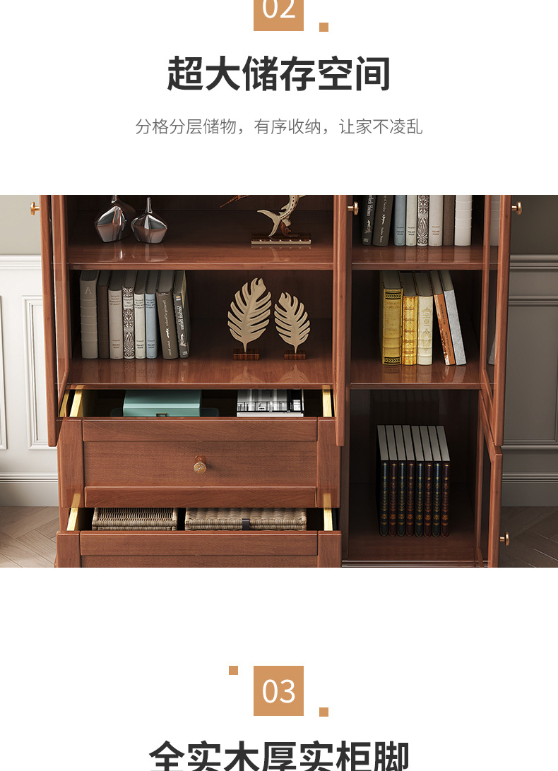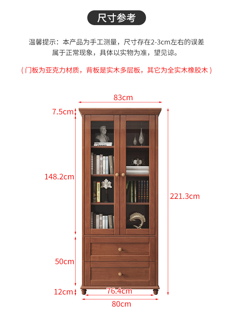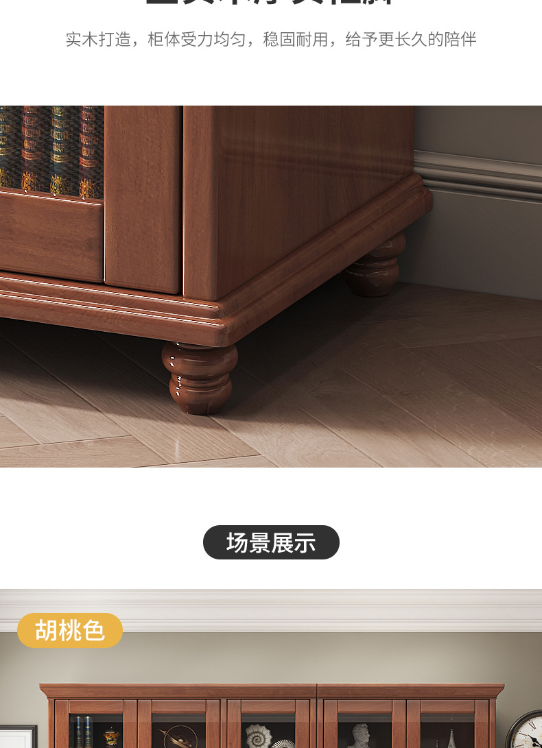 商品名称: 美式三门书柜落地置物柜储物收纳柜