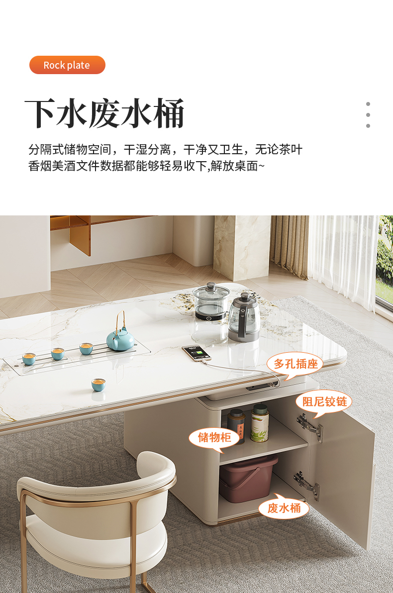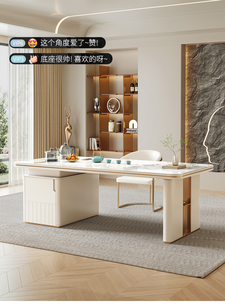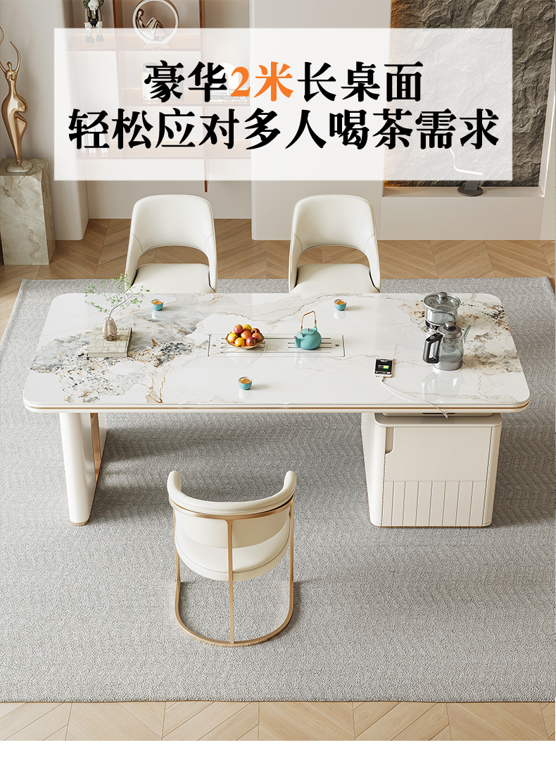 商品名称: 轻奢岩板茶台功夫茶桌办公室大板茶桌办公桌一体