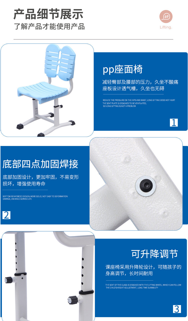 商品名称: ABS可升降课桌椅学生学习桌椅螺丝升降款