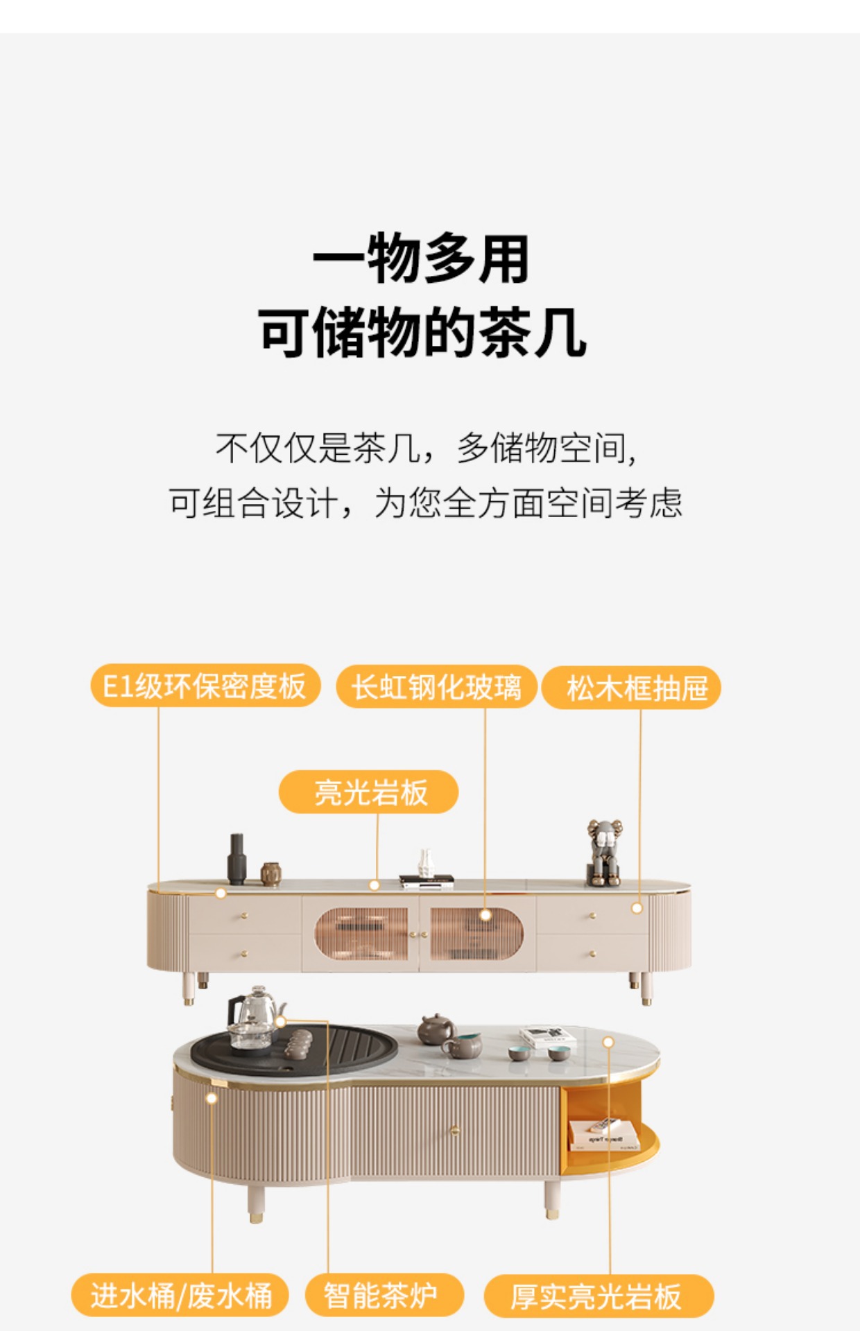 商品名称: 客厅岩板茶几功夫泡茶桌一体茶台