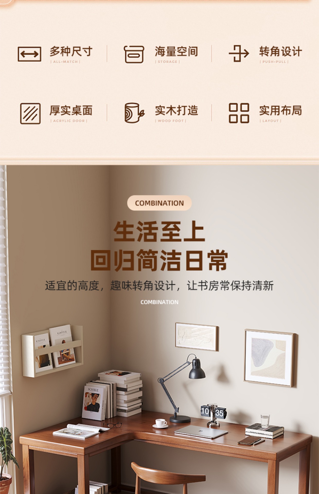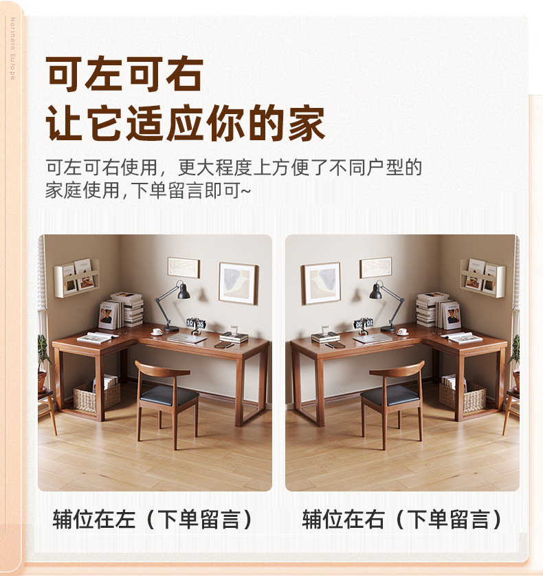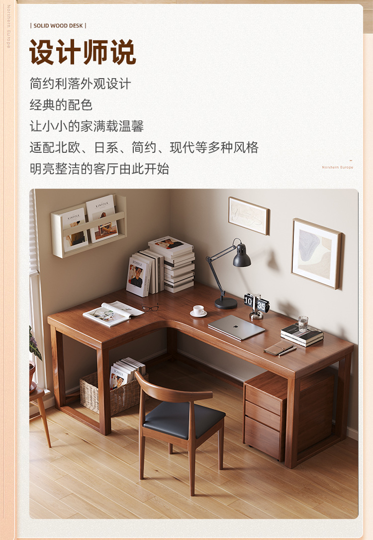 商品名称: 实木转角书桌家用办公桌写字台L型拐角电脑桌
