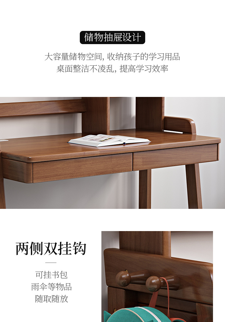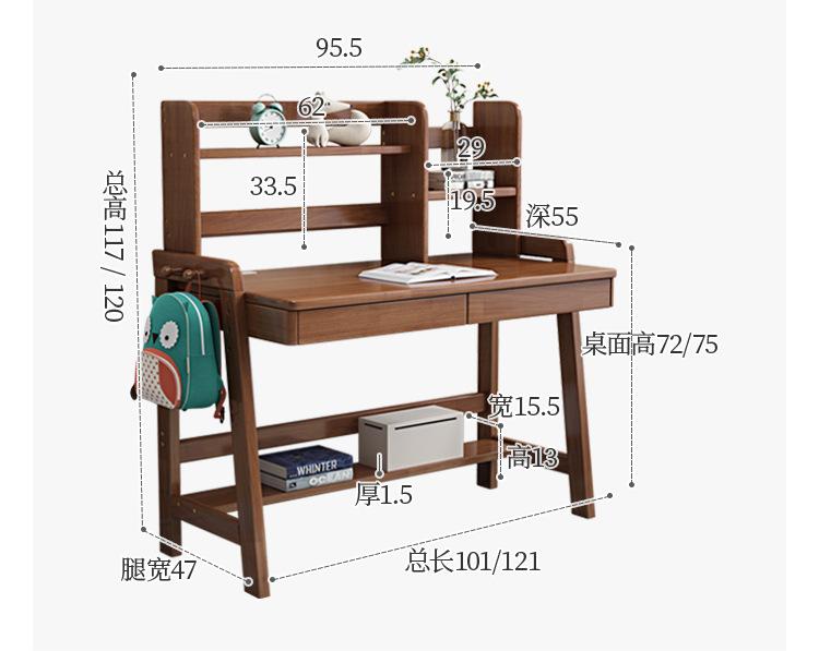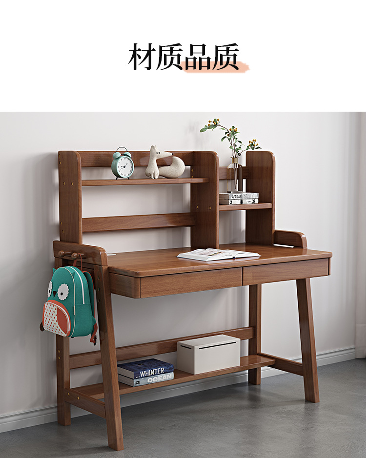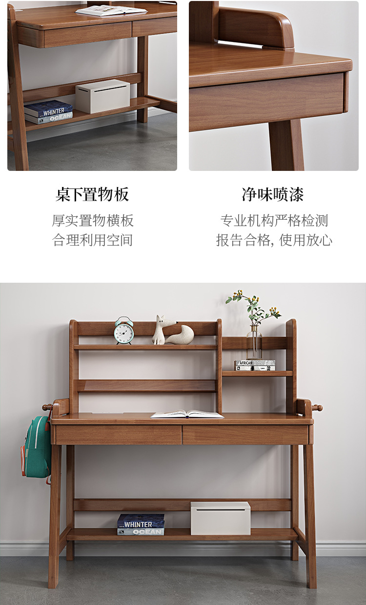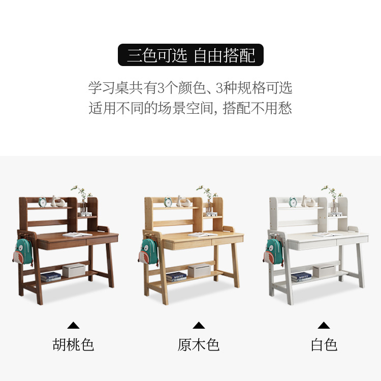 商品名称: 北欧实木儿童书桌书架一体家用学生学习桌写字台升降桌