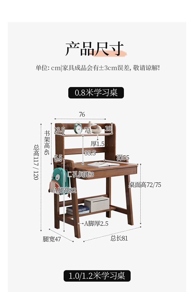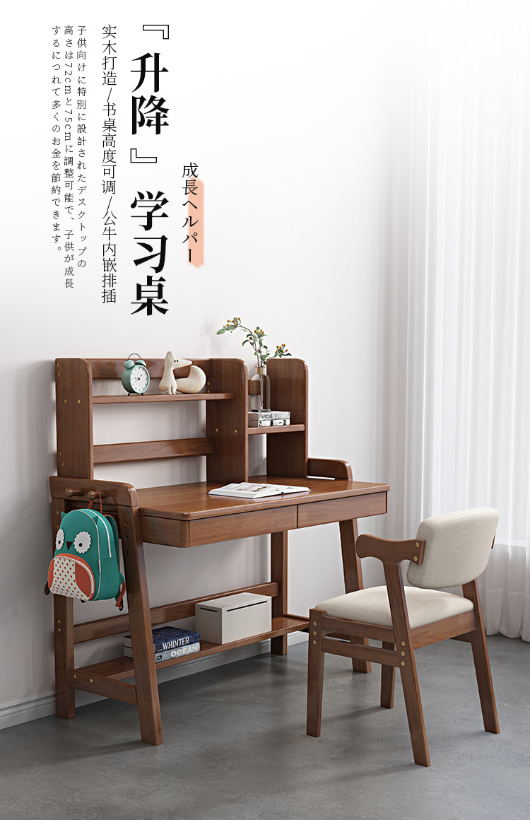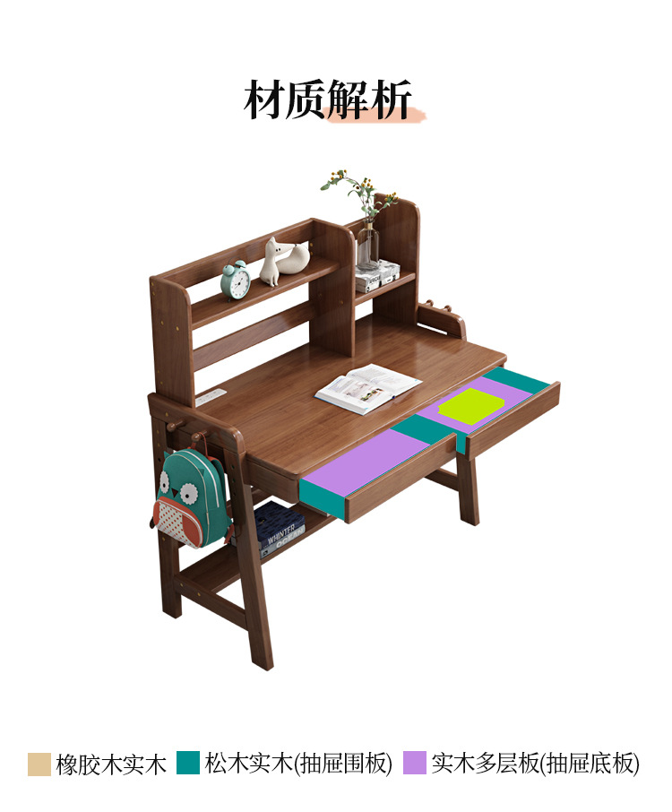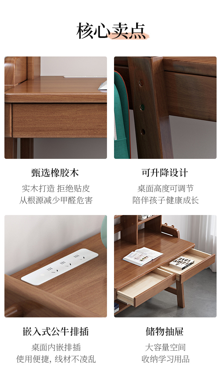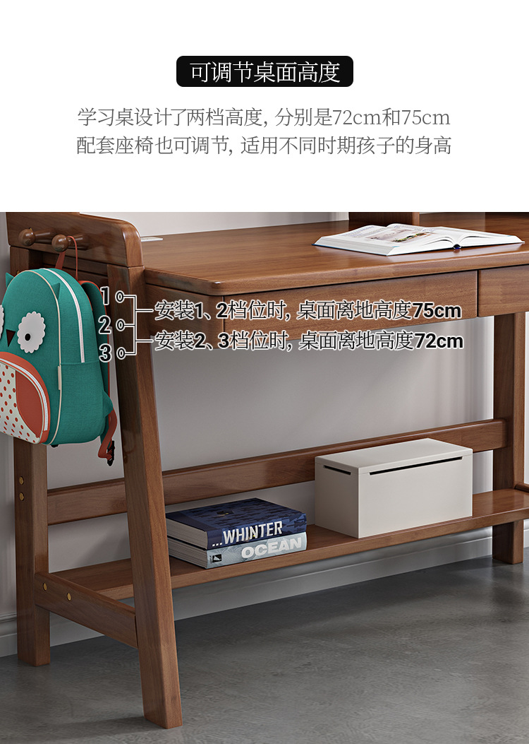 商品名称: 北欧实木儿童书桌书架一体家用学生学习桌写字台升降桌