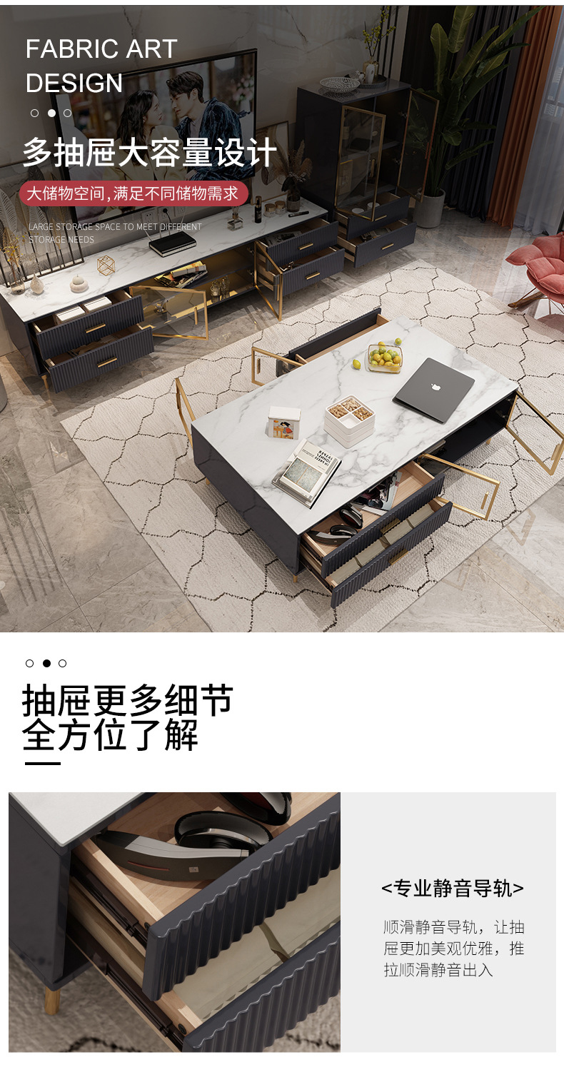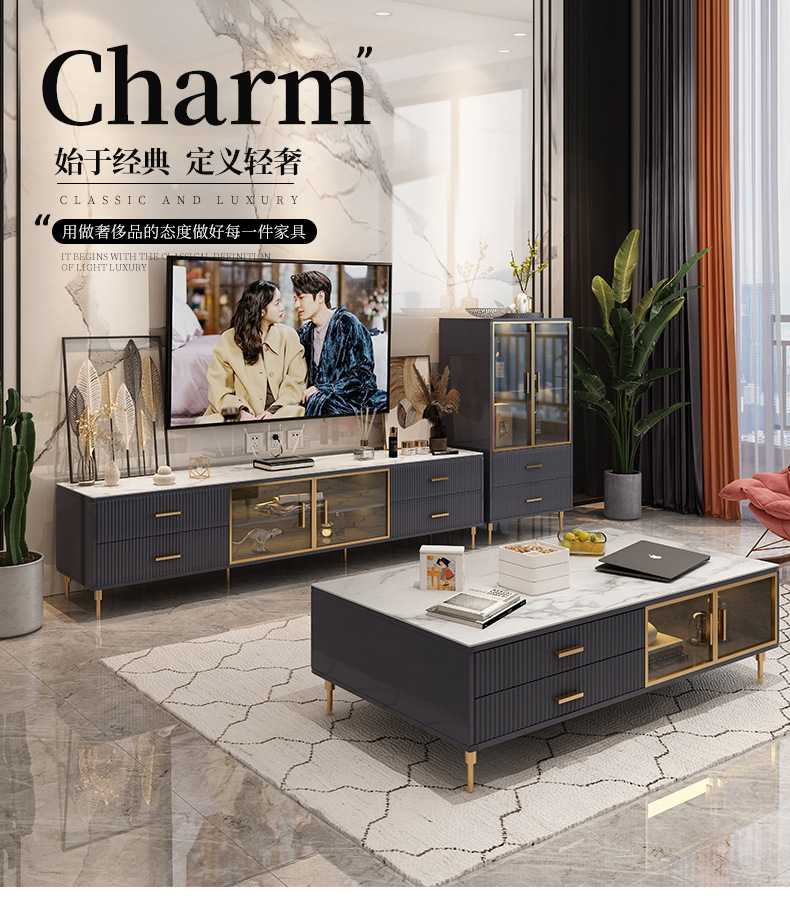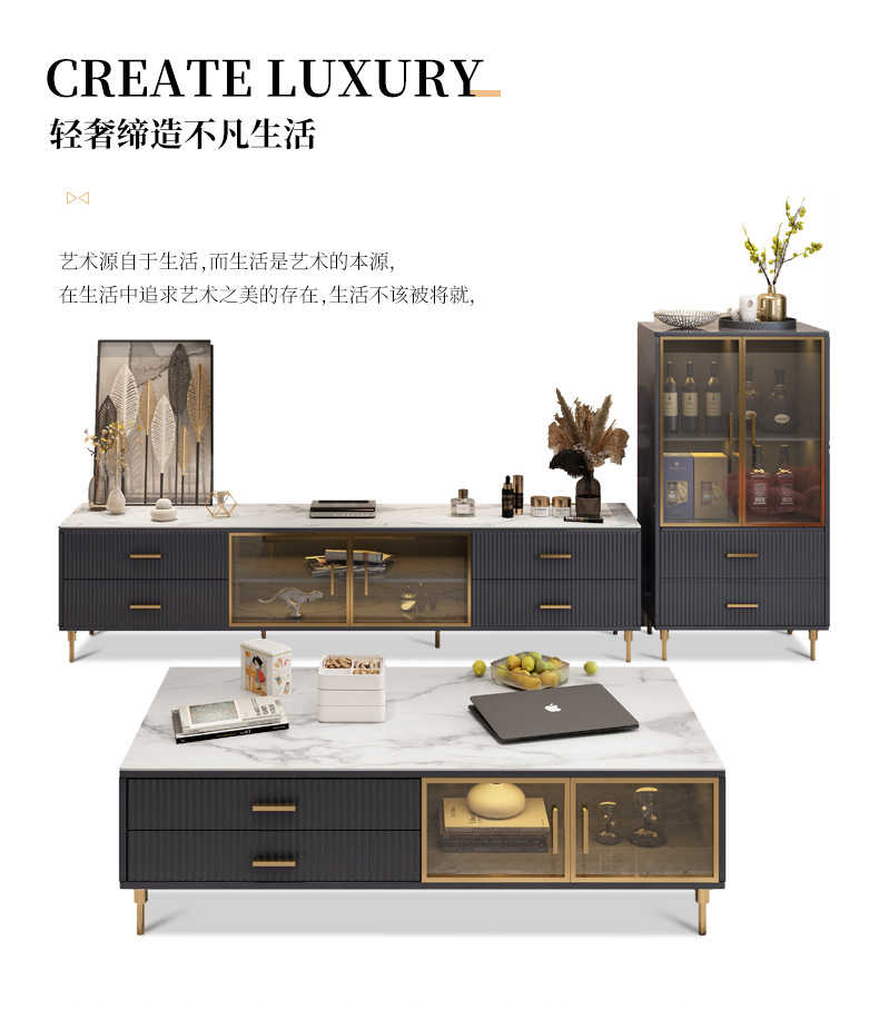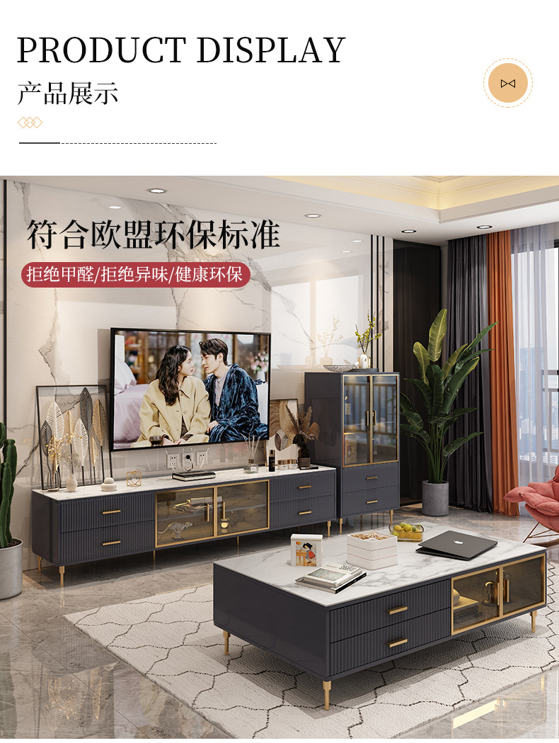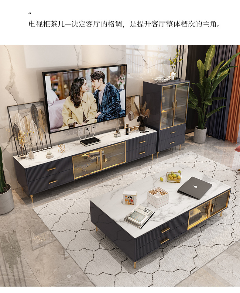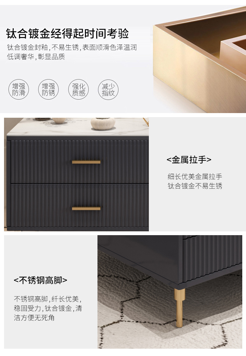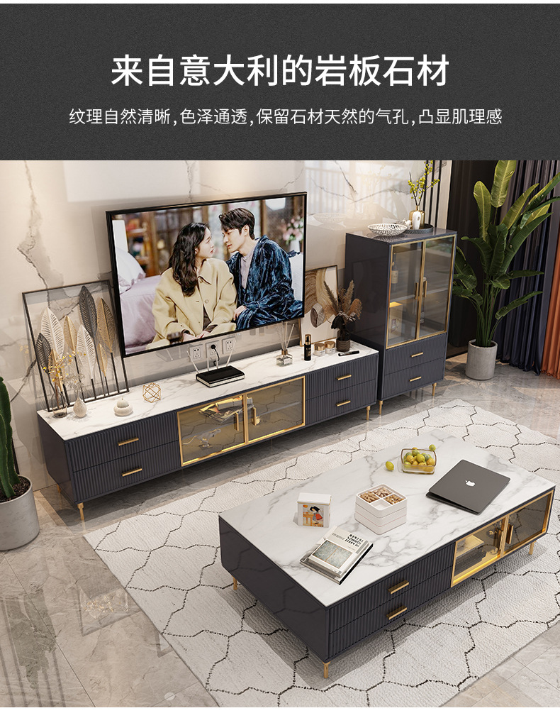 磷贝 意式轻奢岩板方形茶几 430*1300*700