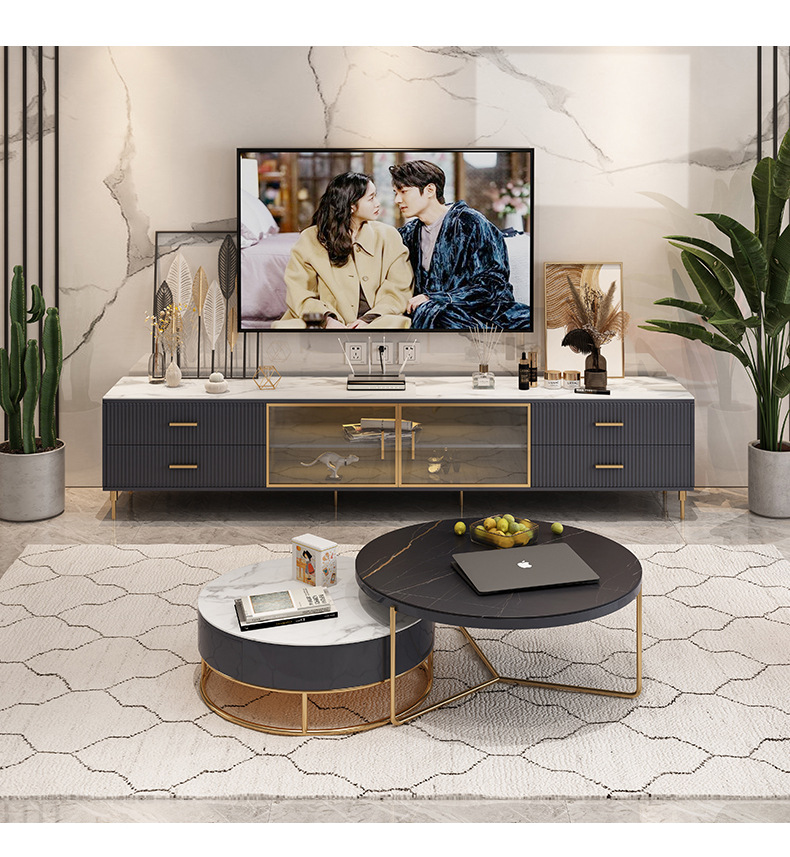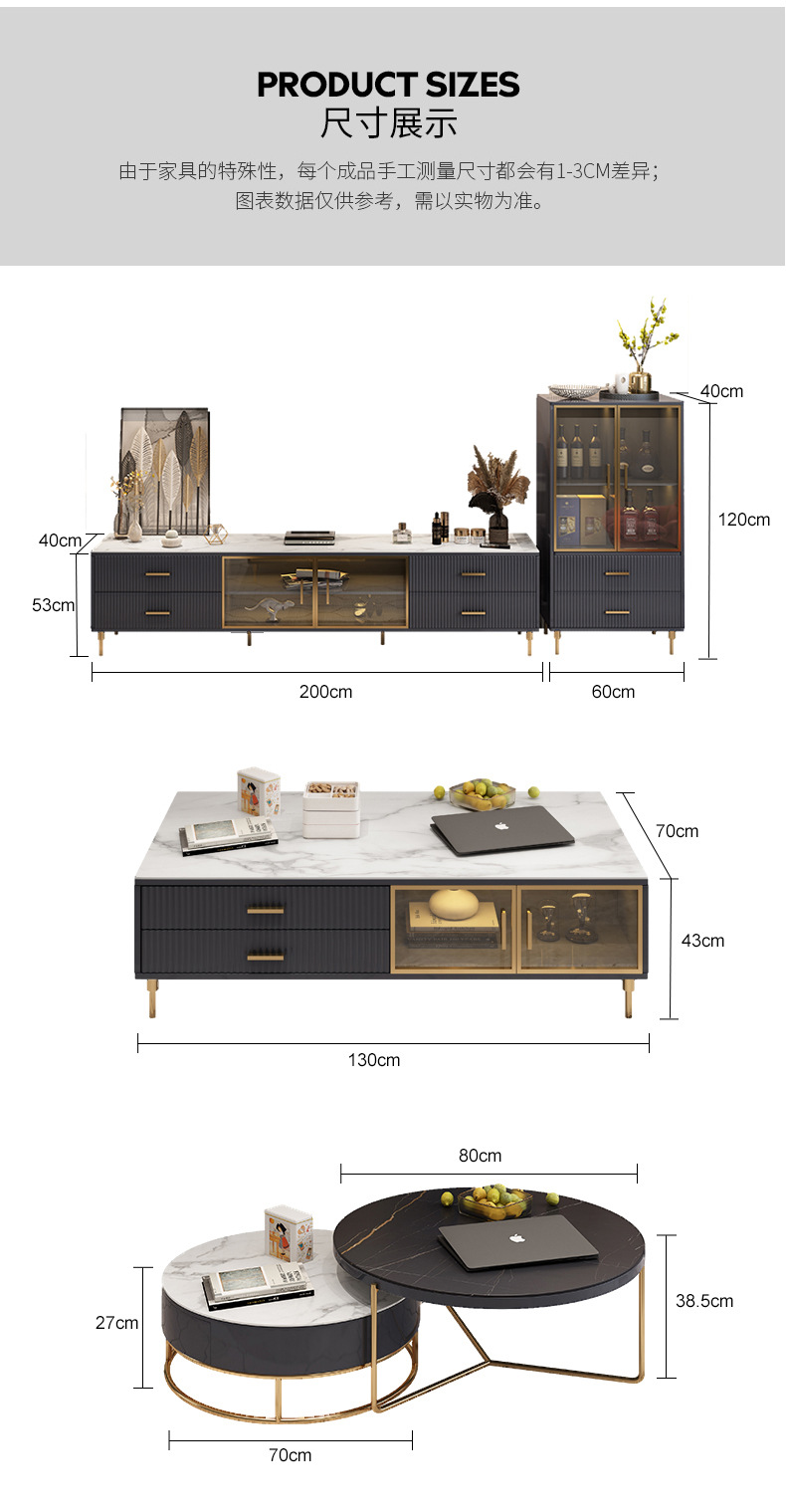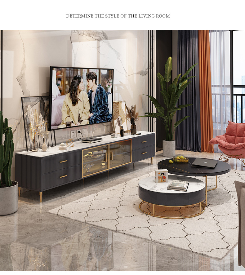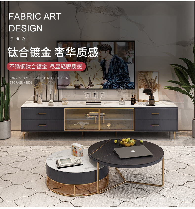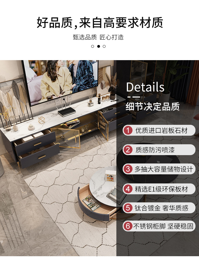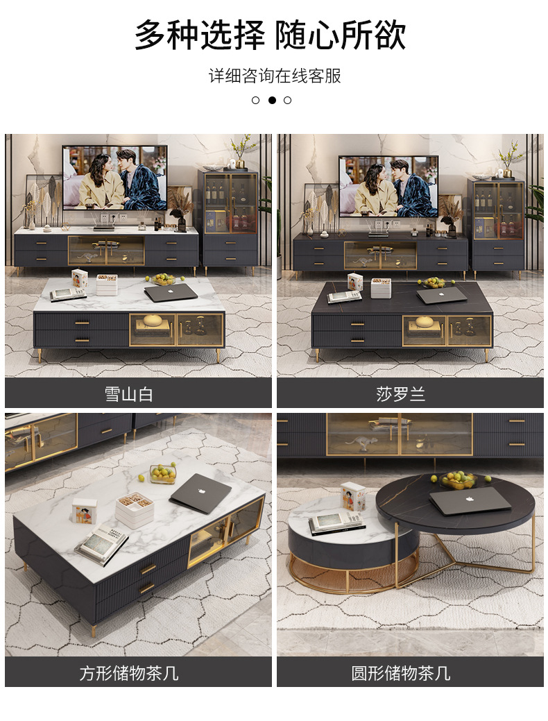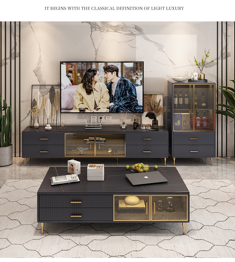 磷贝 意式轻奢岩板方形茶几 430*1300*700