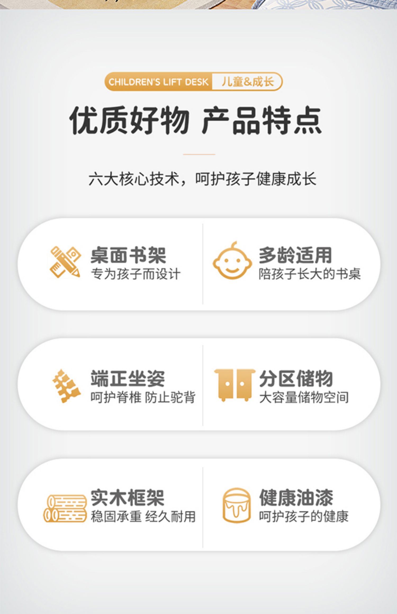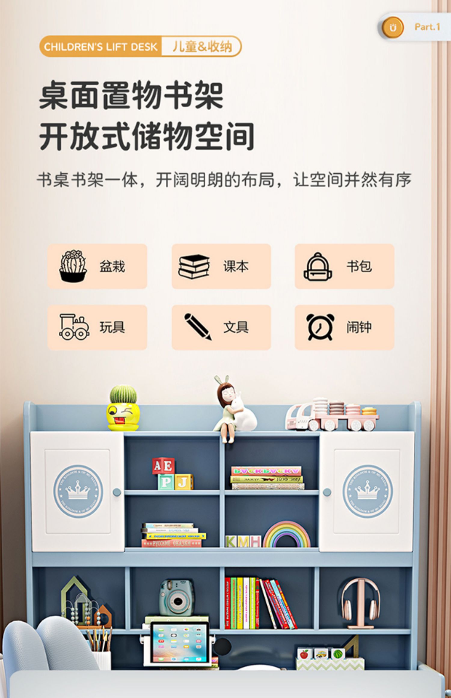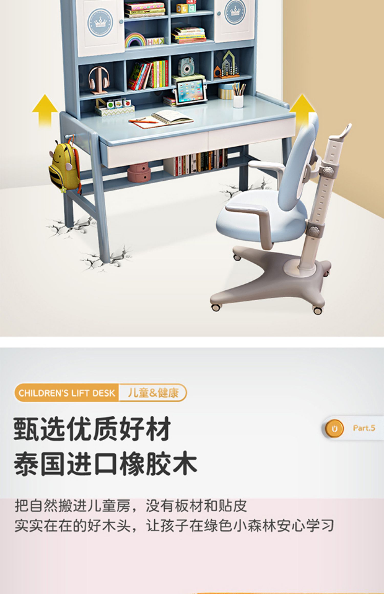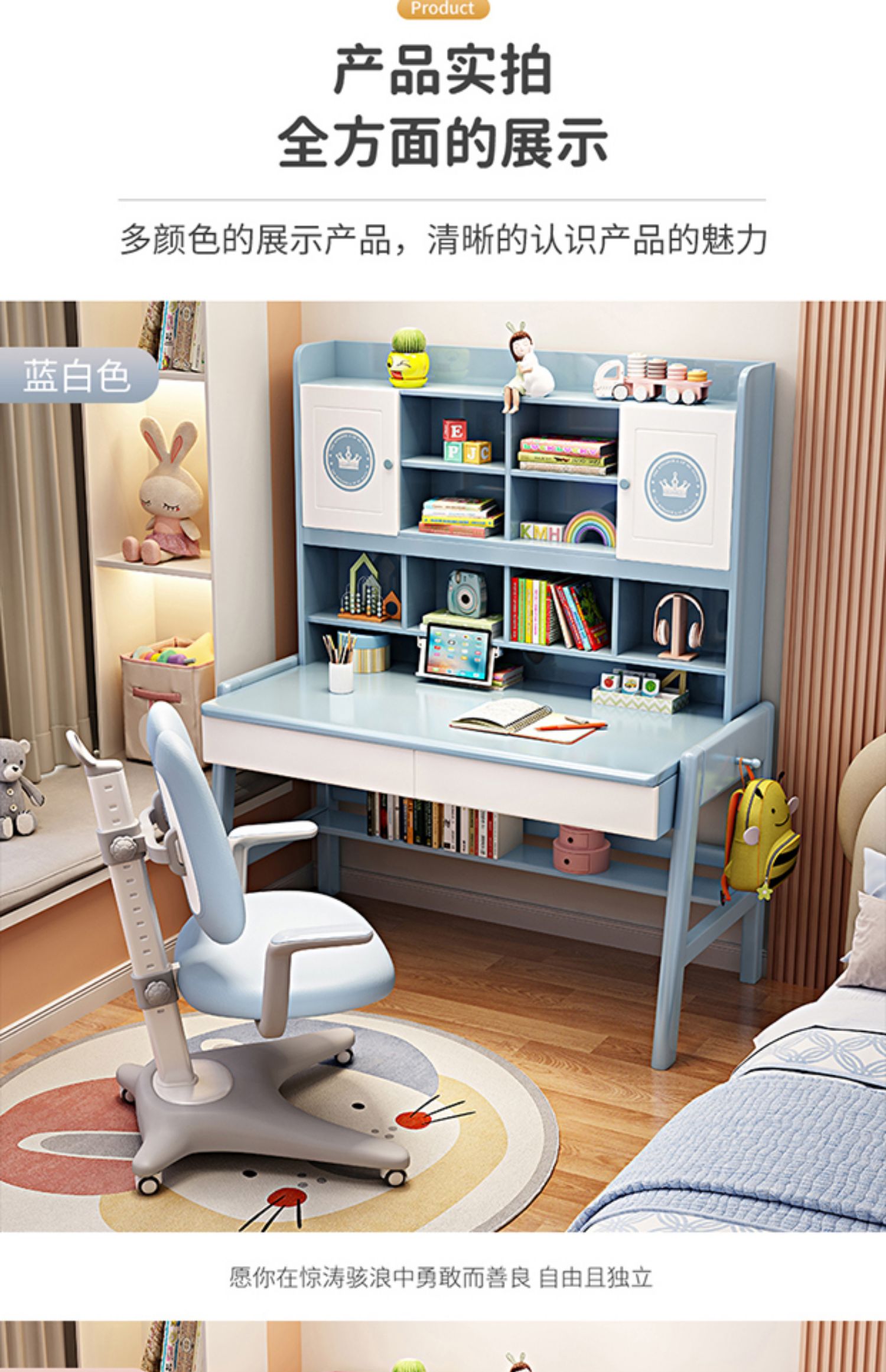 商品名称: 实木儿童书桌书架一体家用学生写字桌学习桌
