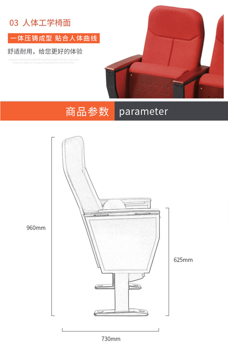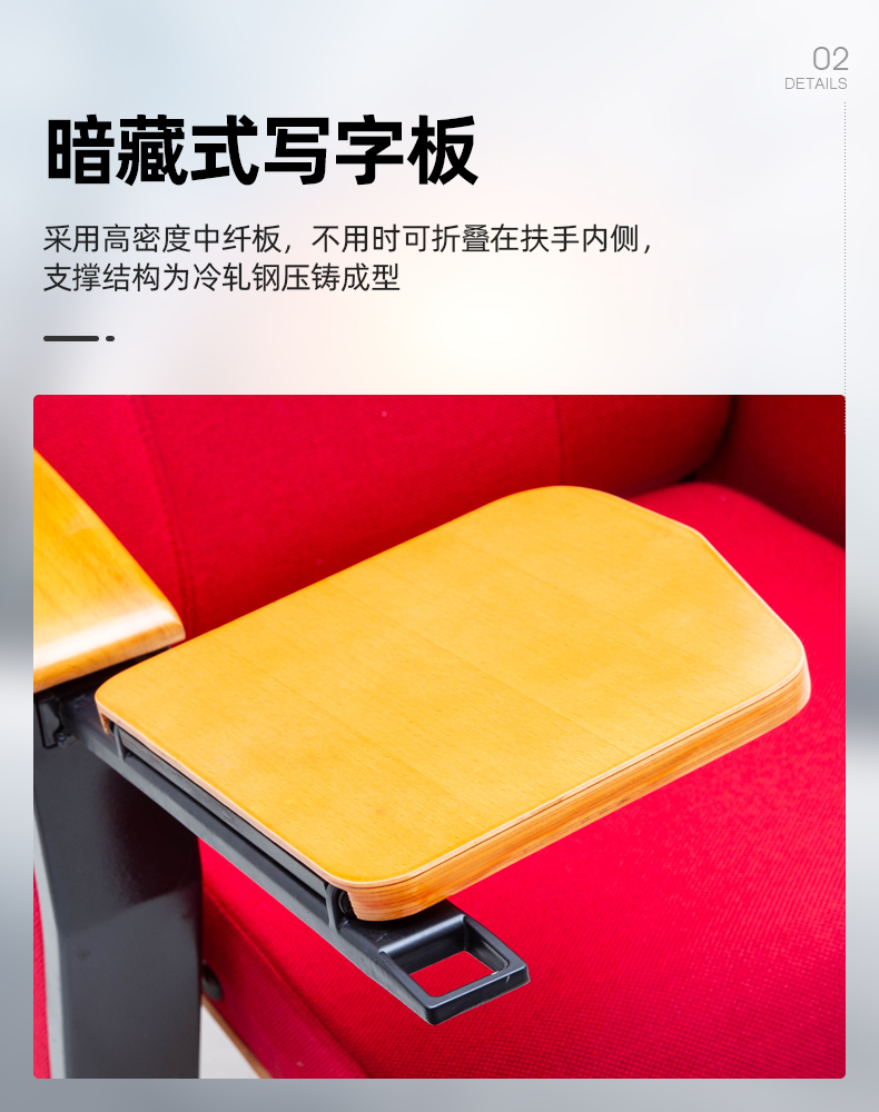商品名称: 带写字板礼堂椅影院椅报告厅连排椅1(五连位均价)