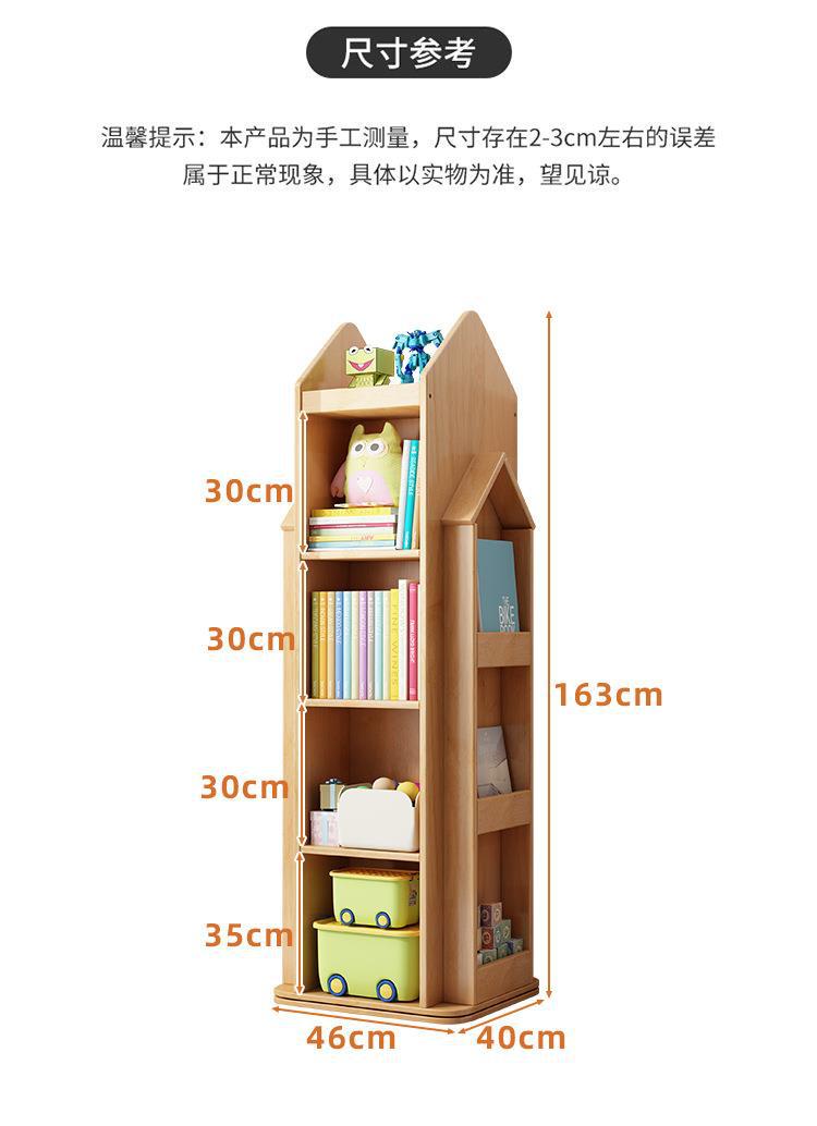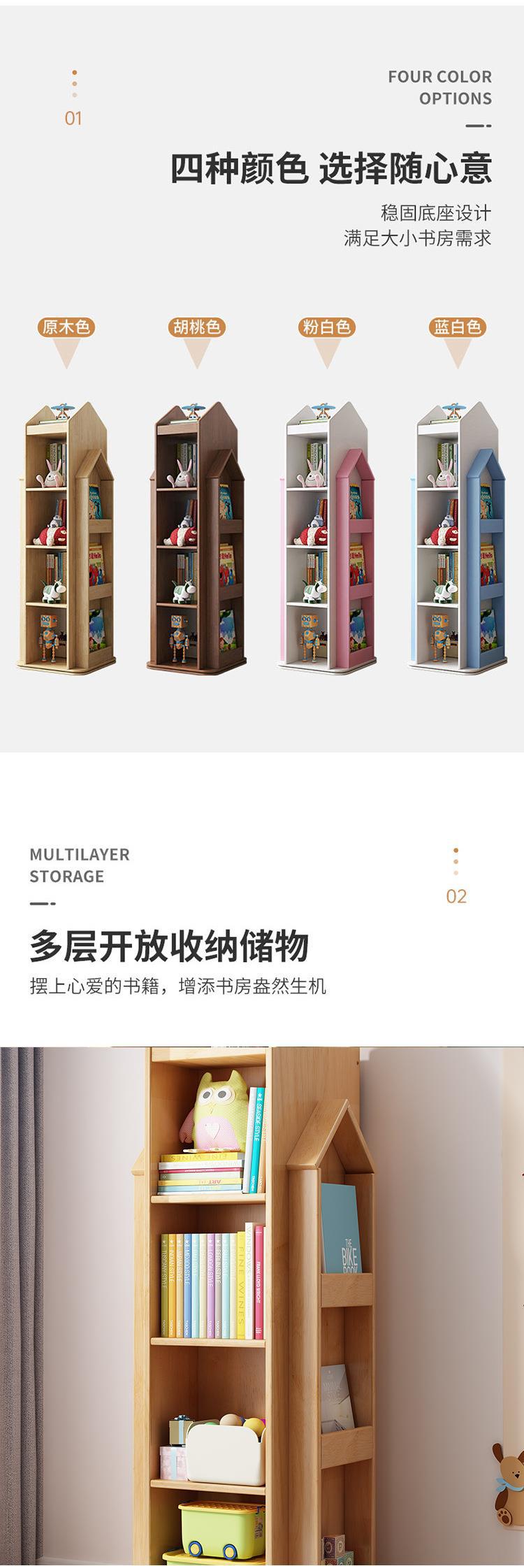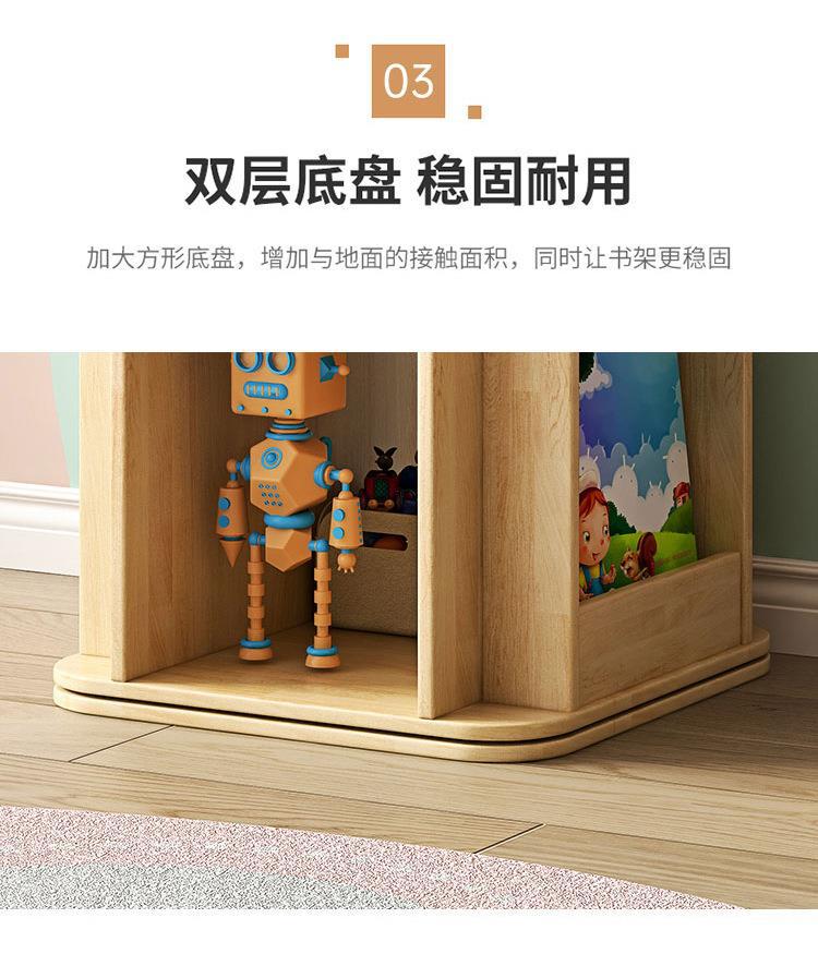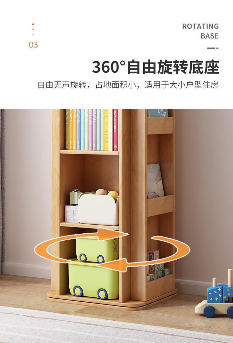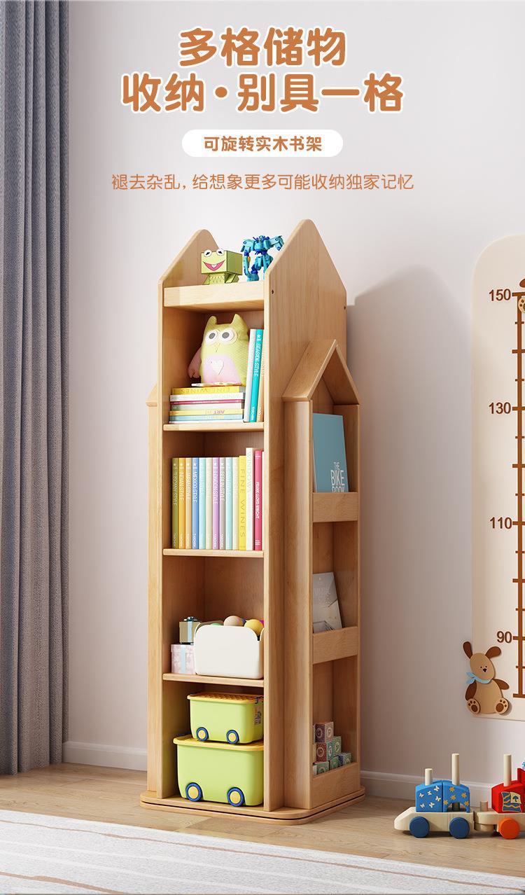 商品名称: 可旋转实木橡胶木儿童书架置物架展示柜书柜收纳柜
