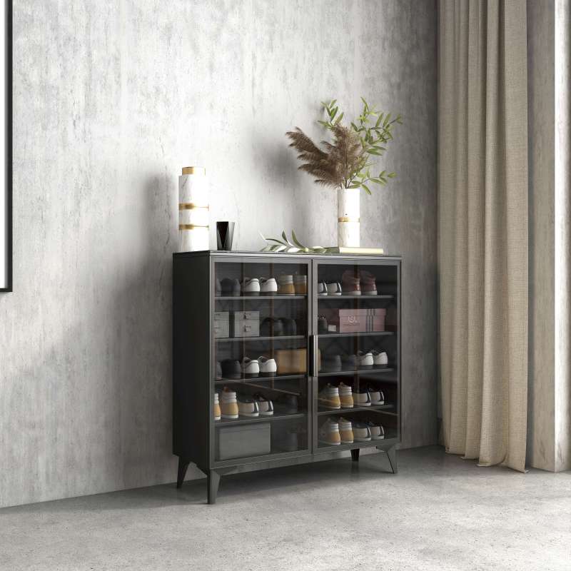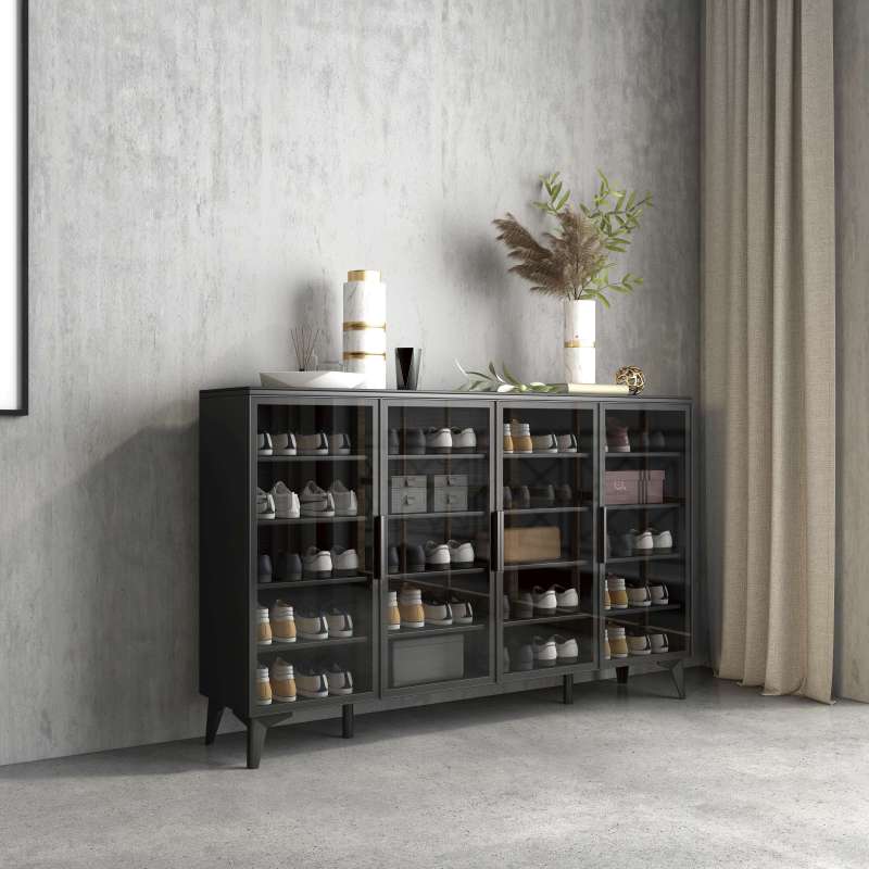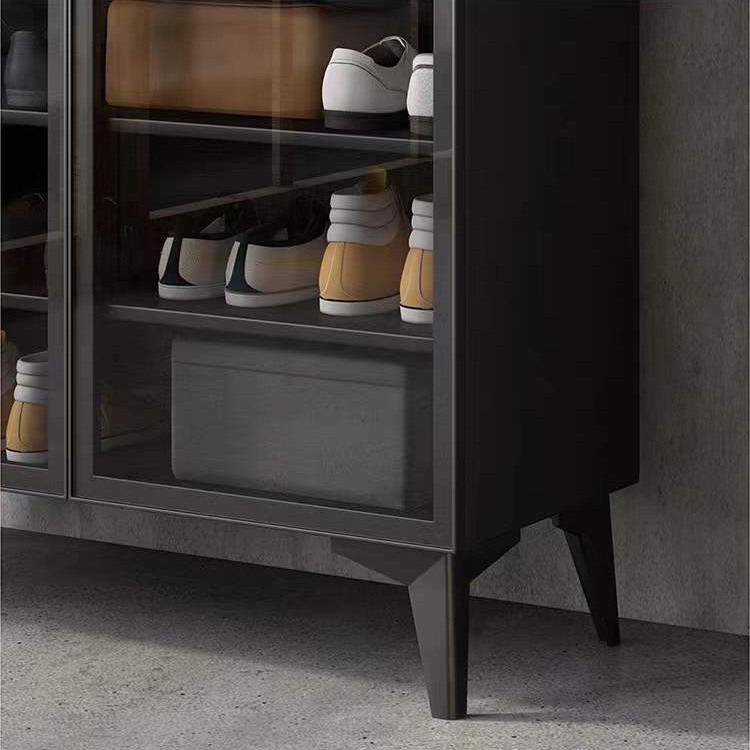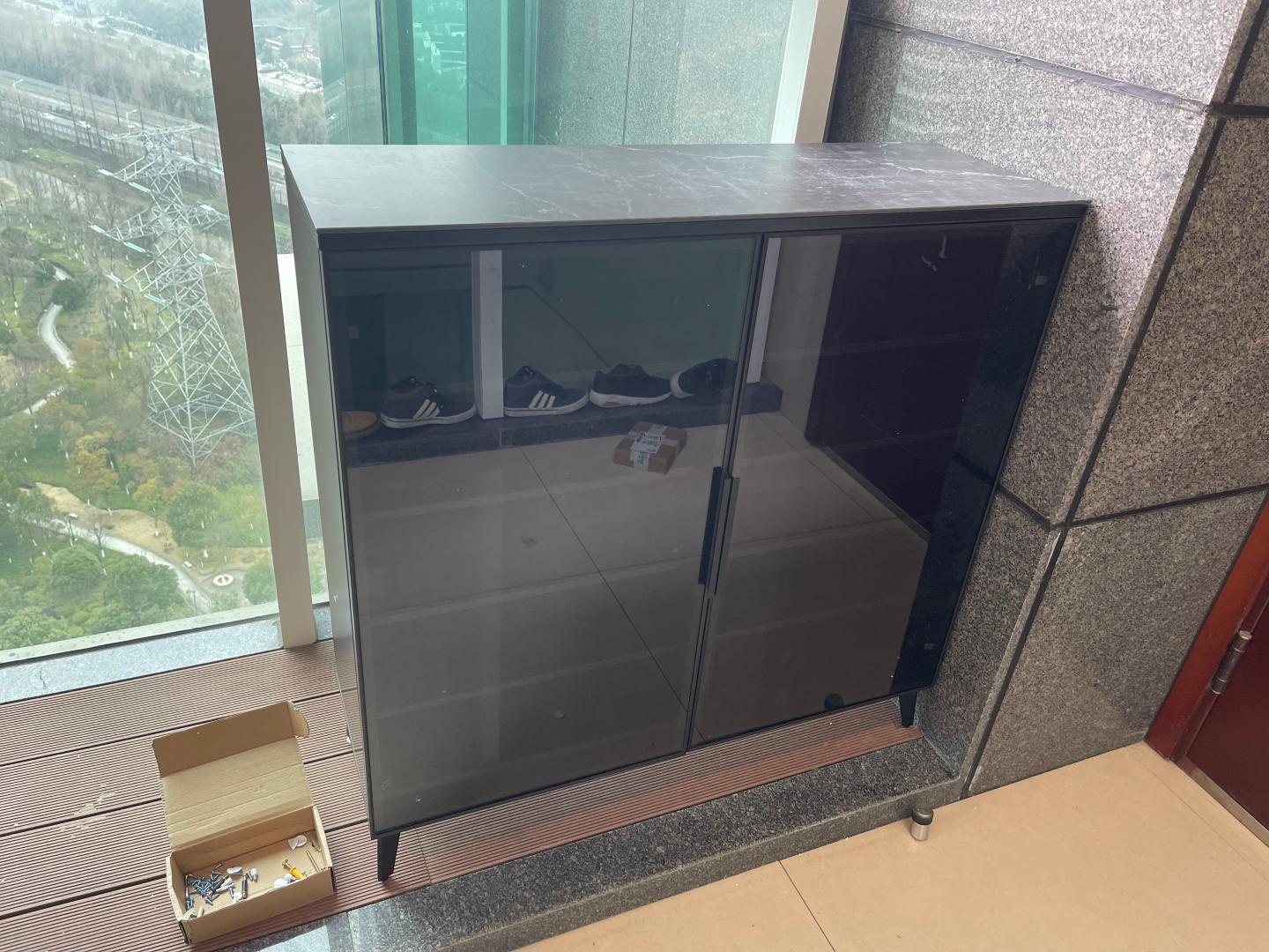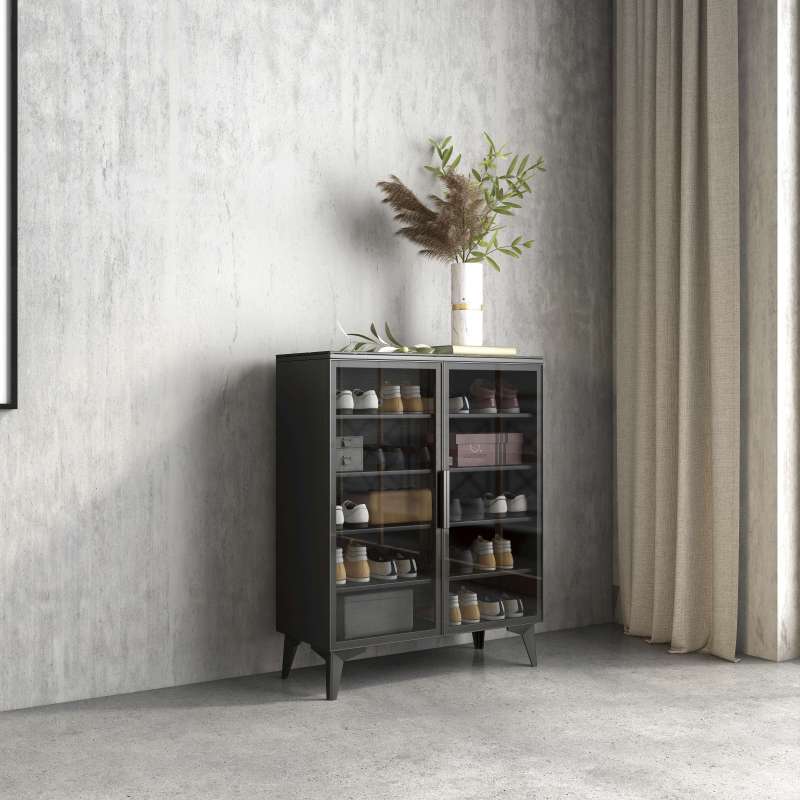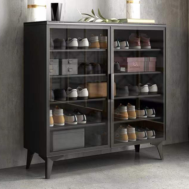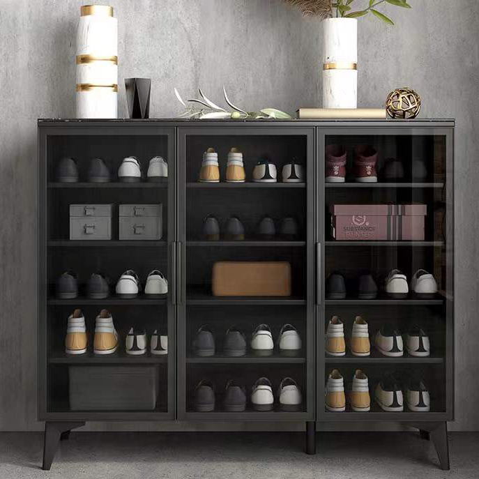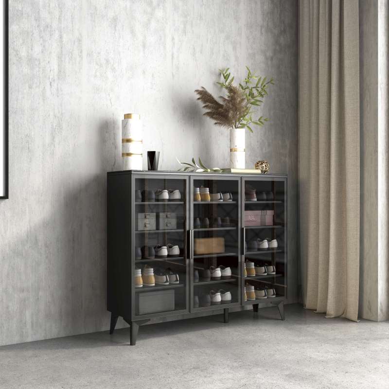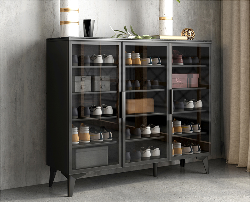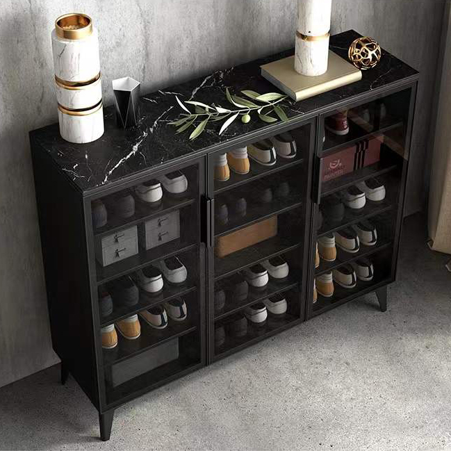 商品名称: 极简轻奢沉稳黑色岩板玻璃门三门鞋柜收纳储物柜