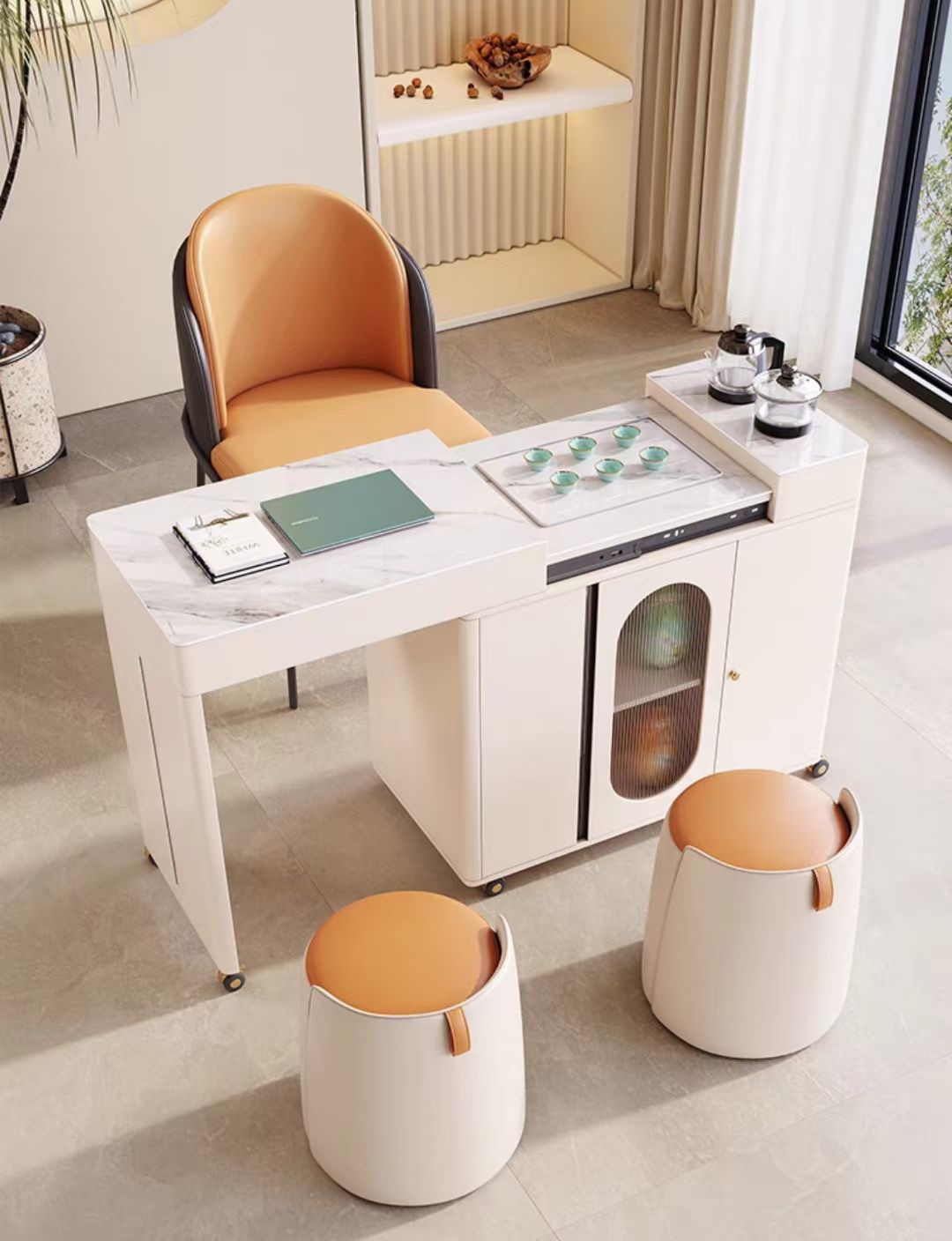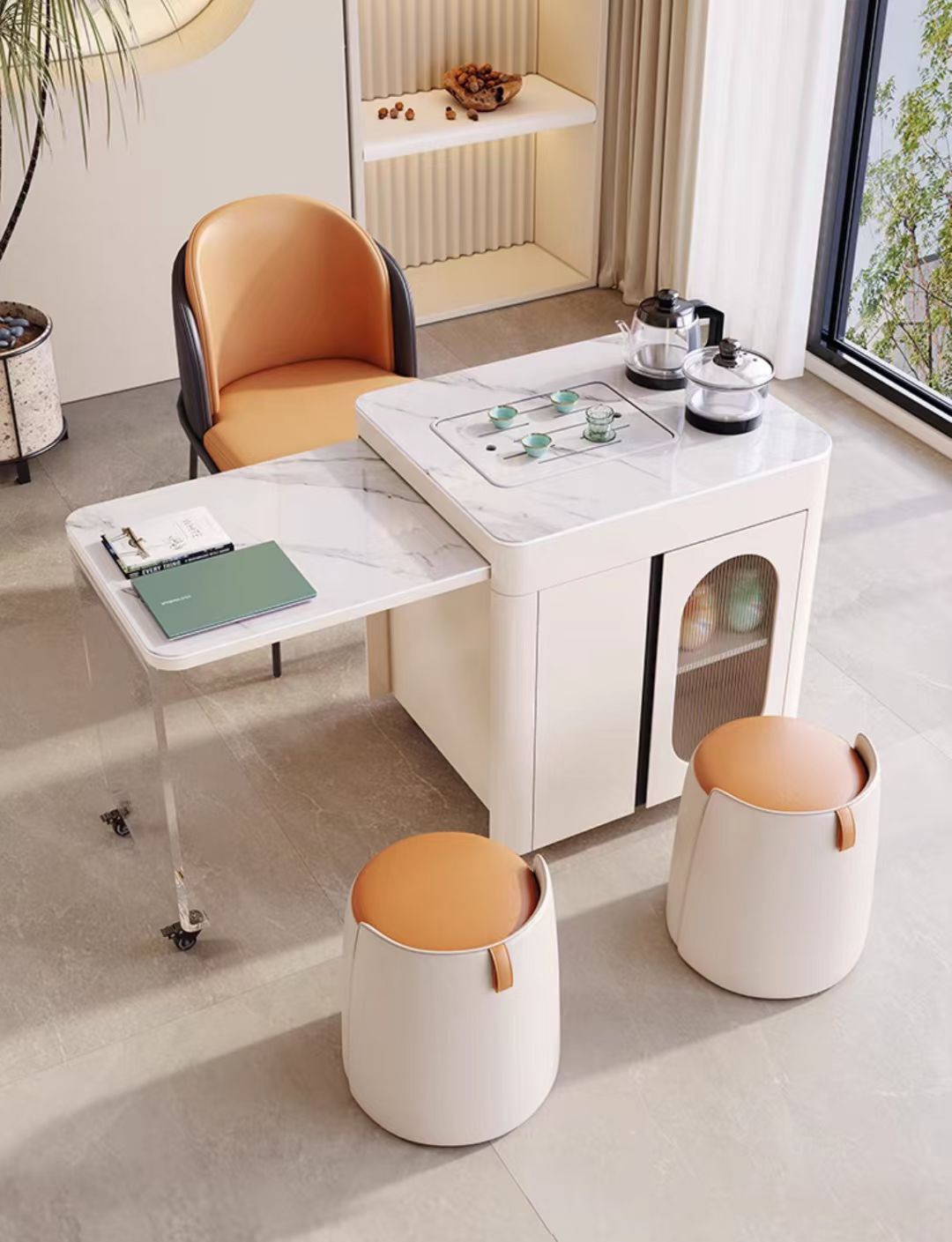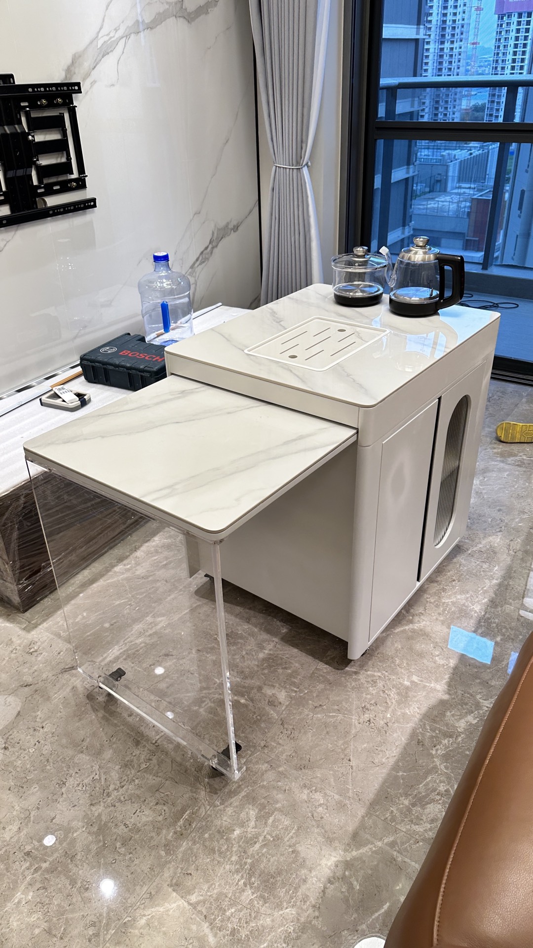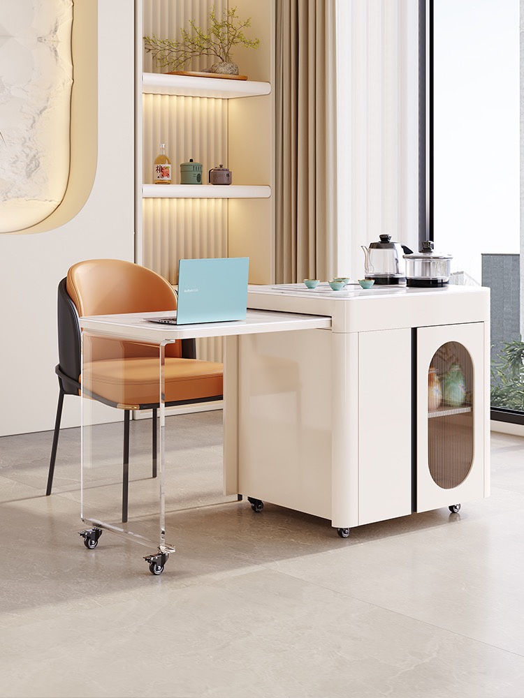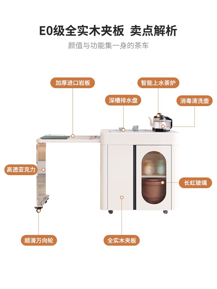 商品名称: 奶油风伸缩岩板茶台茶桌泡茶桌移动小茶车茶几