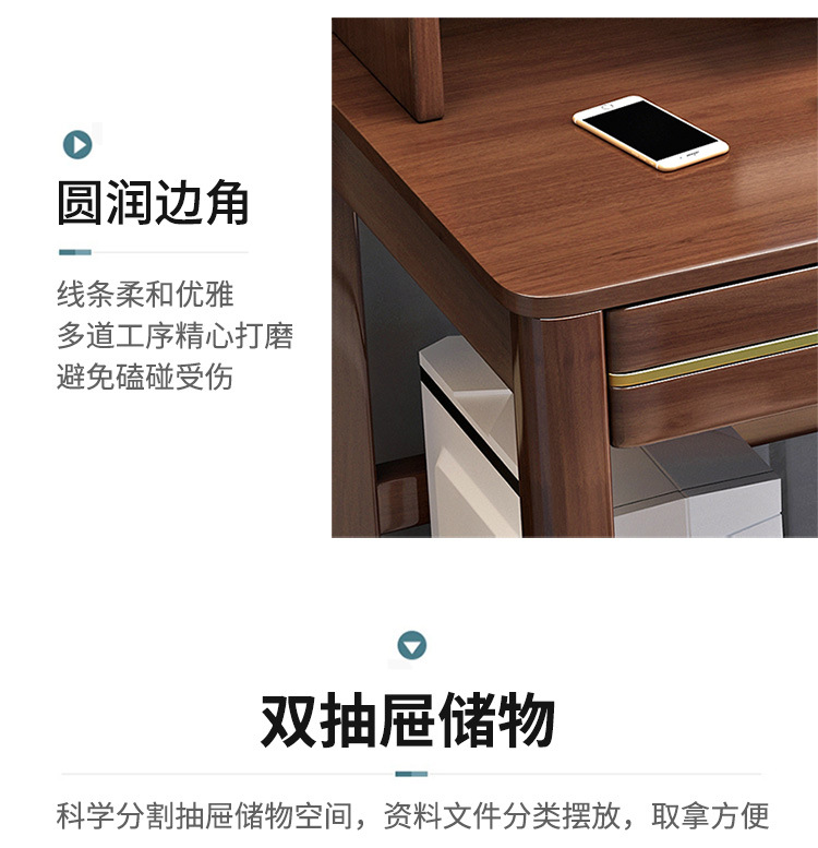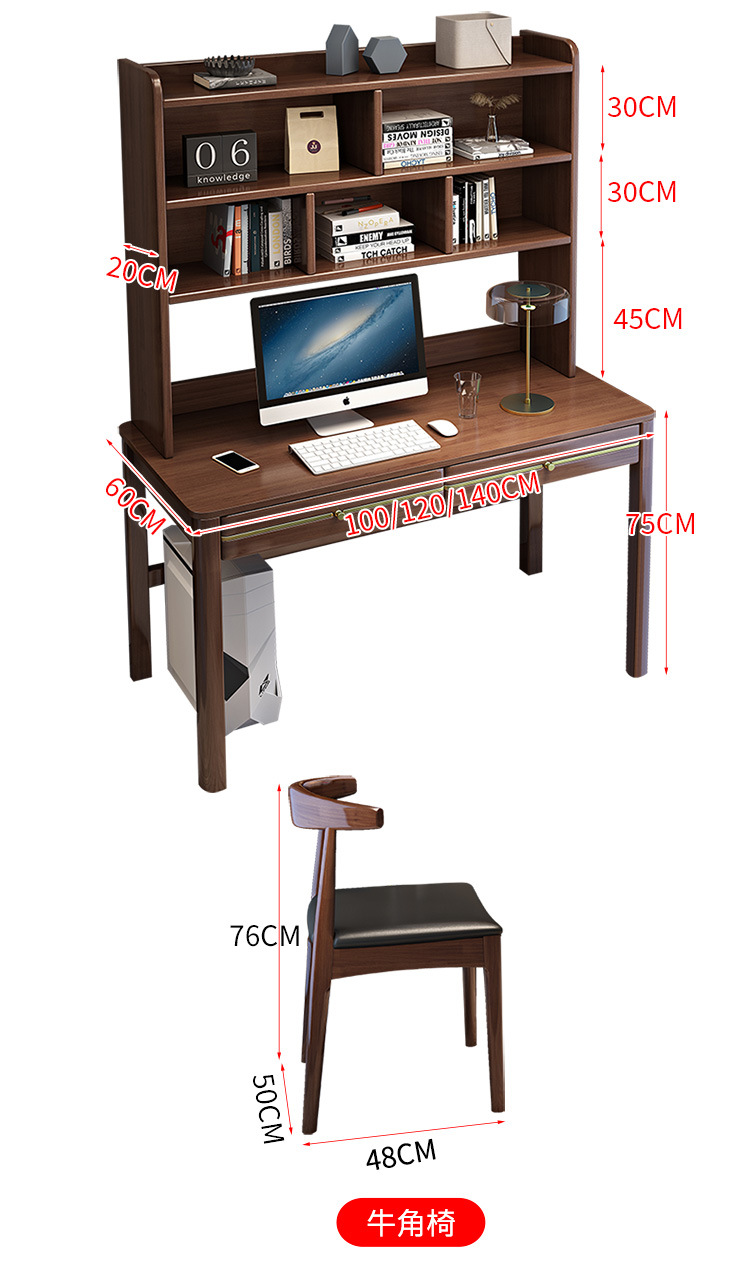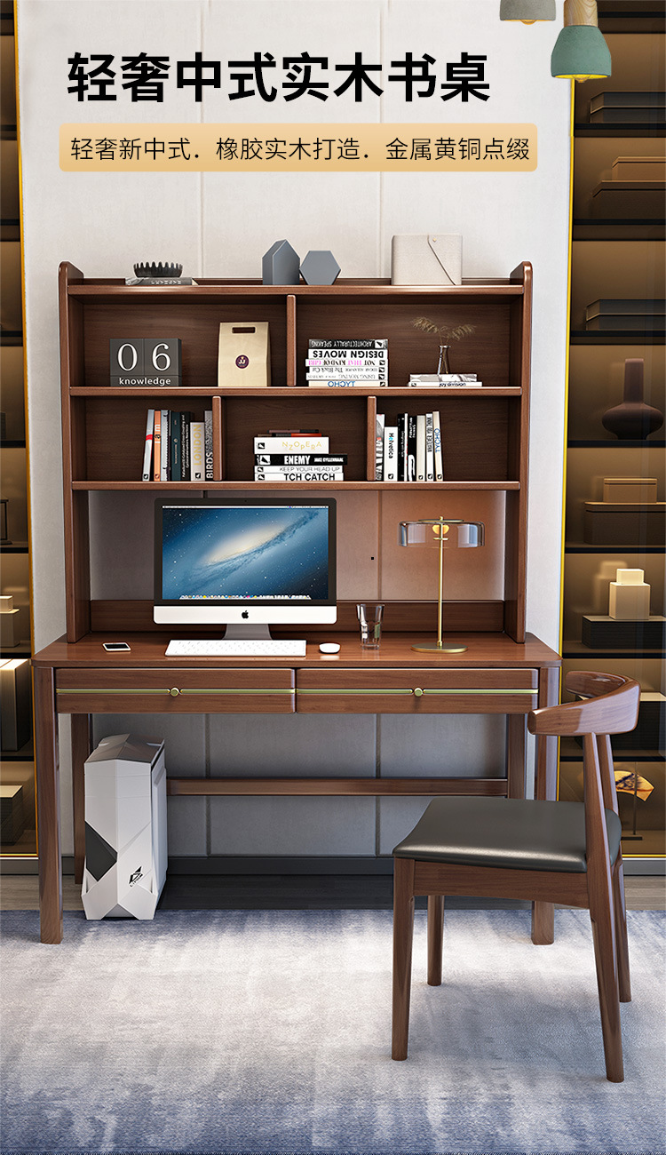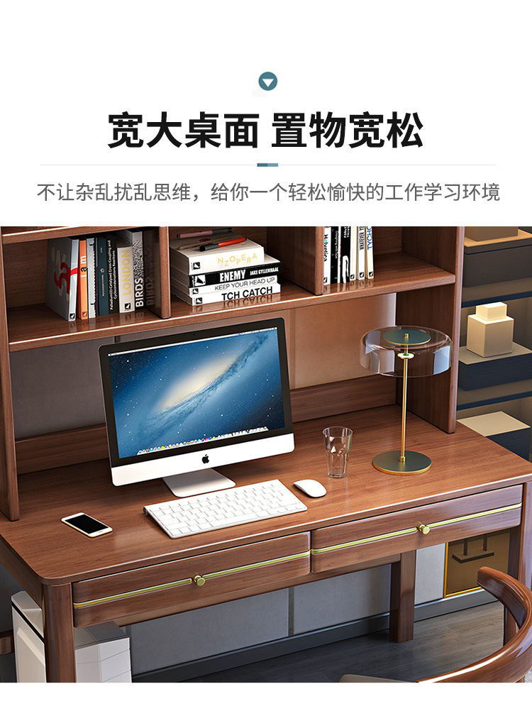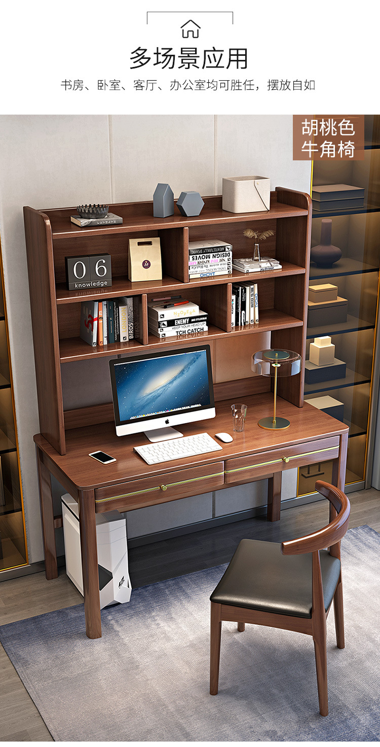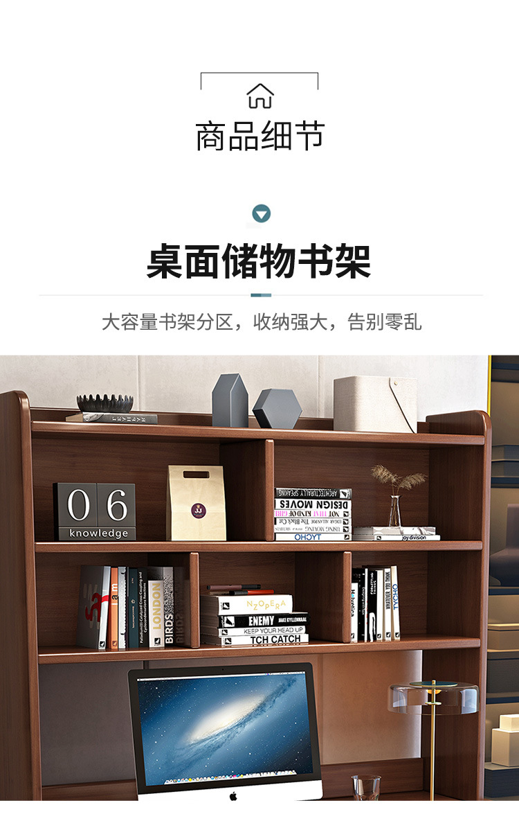 商品名称: 实木书桌书架组合一体电脑桌家用学生写字台学习桌