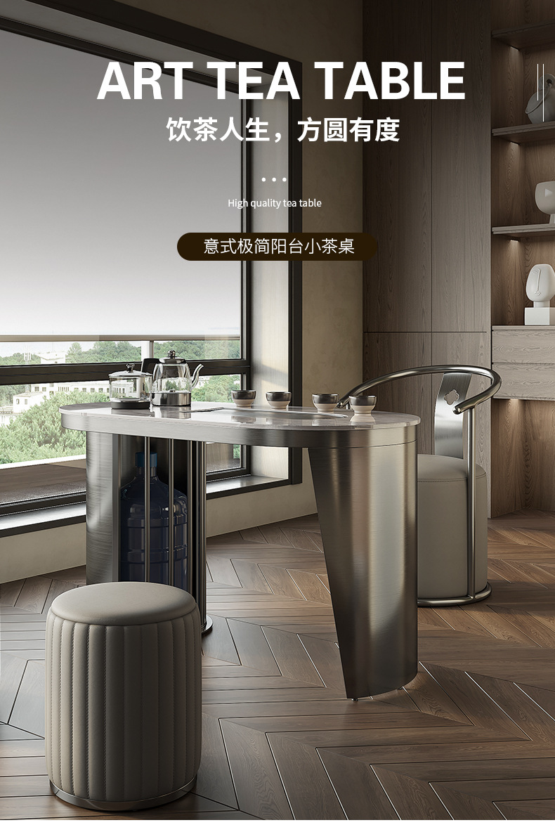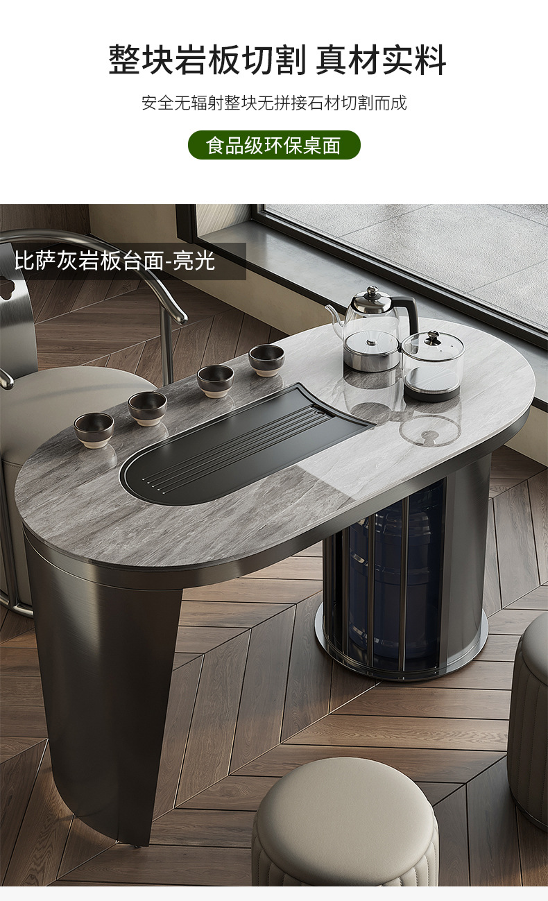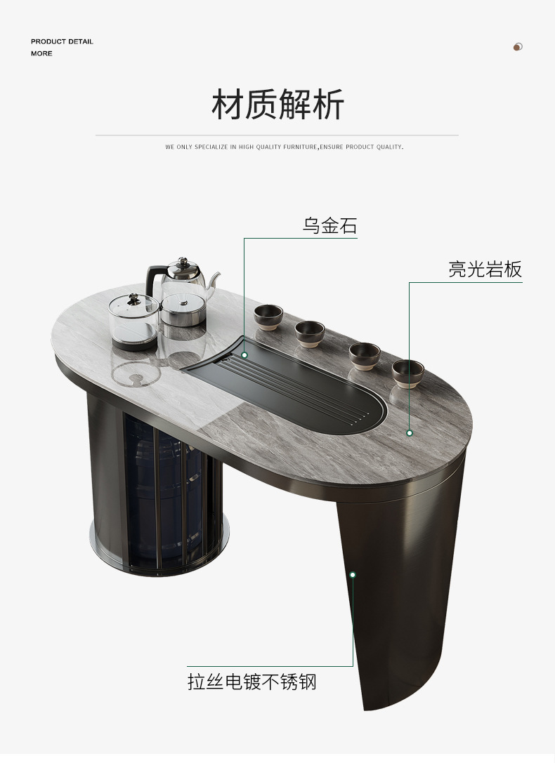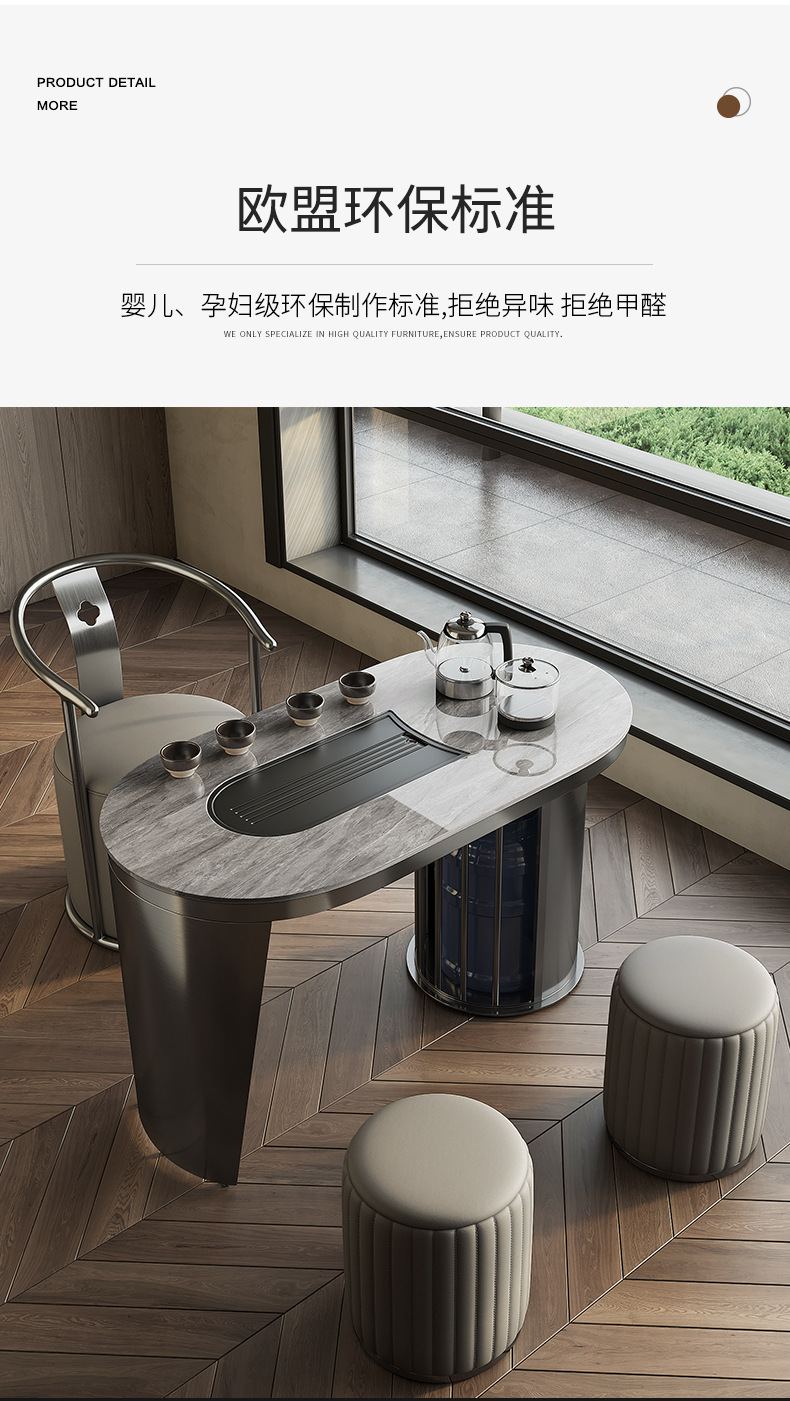 商品名称: 轻奢岩板不锈钢茶台功夫泡茶台茶艺桌家用小茶桌