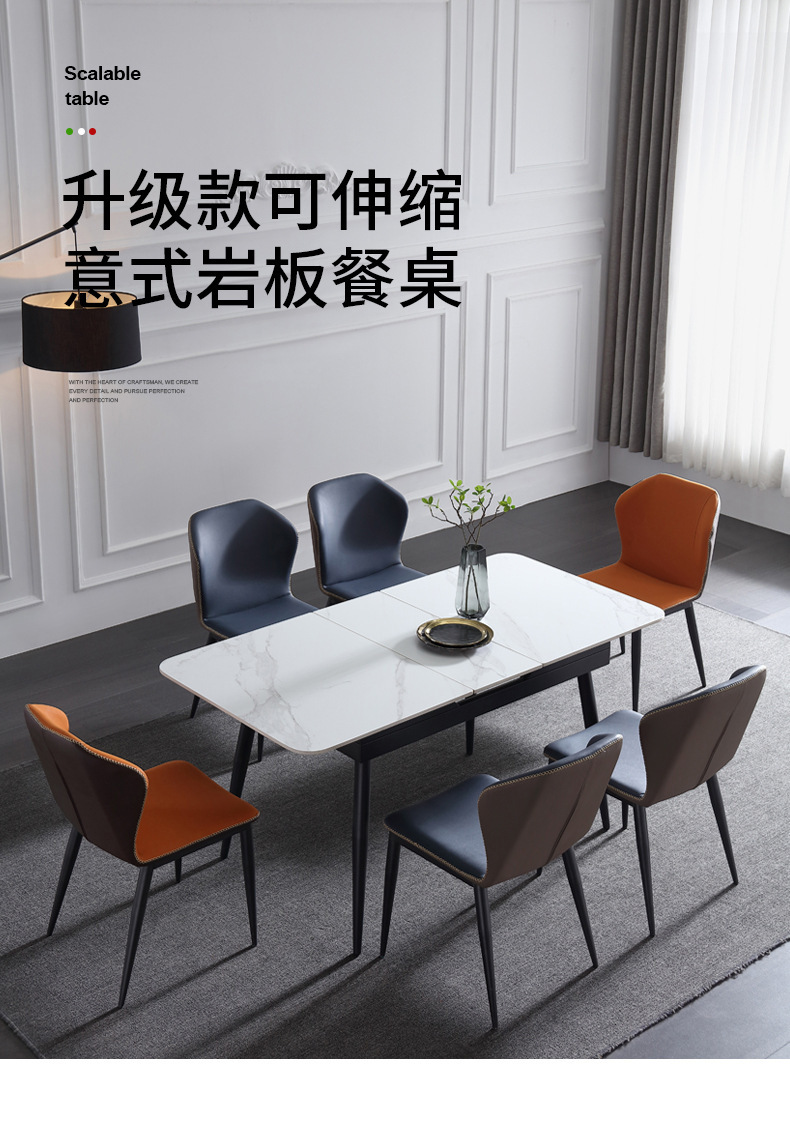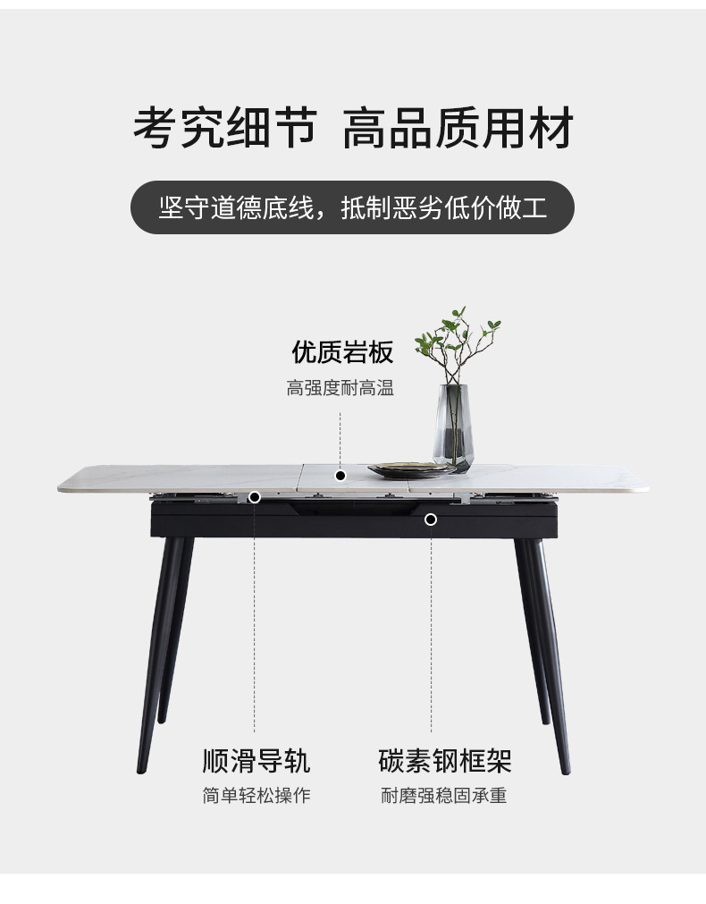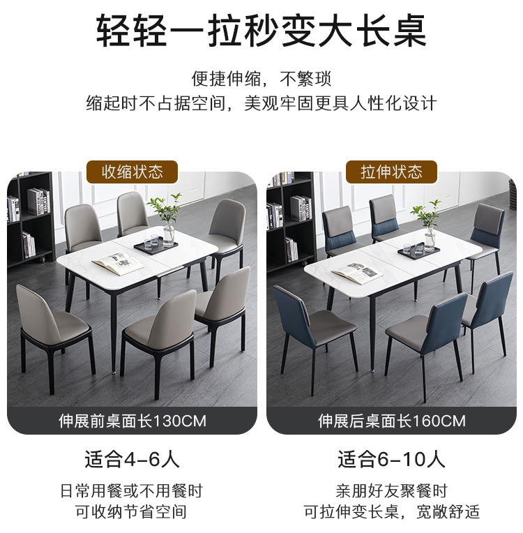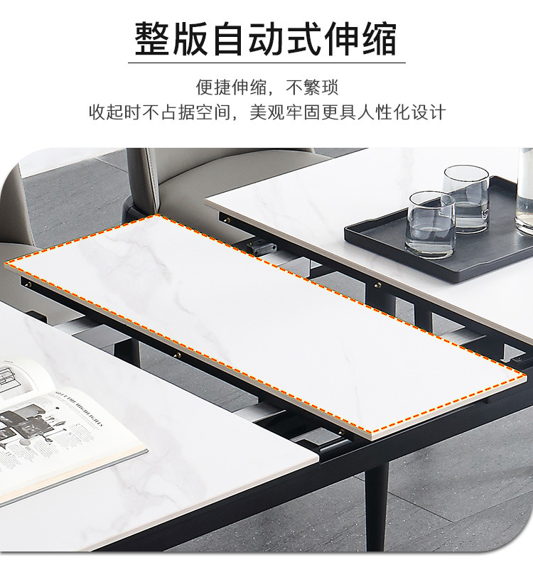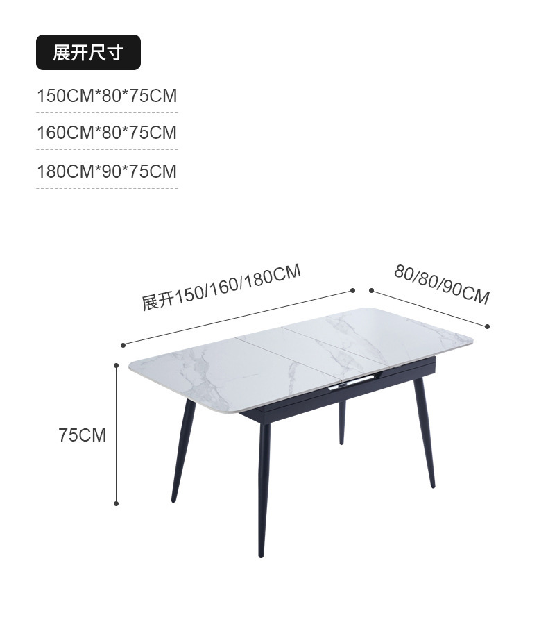 商品名称: 伸缩岩板长方形餐桌多功能拉伸方桌