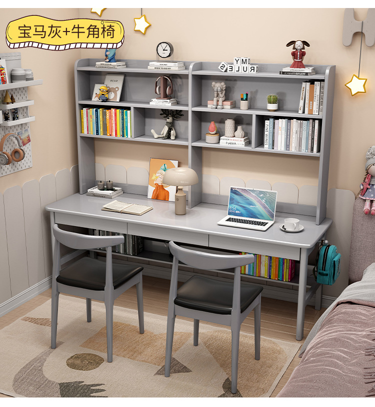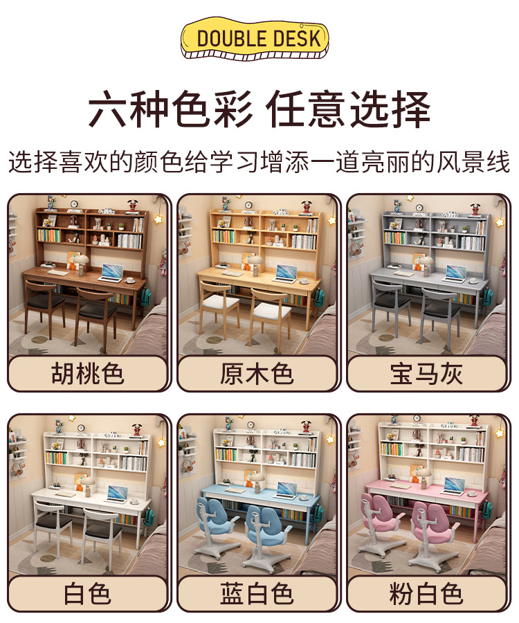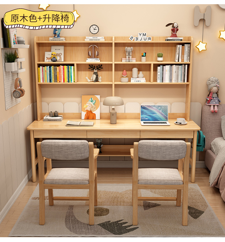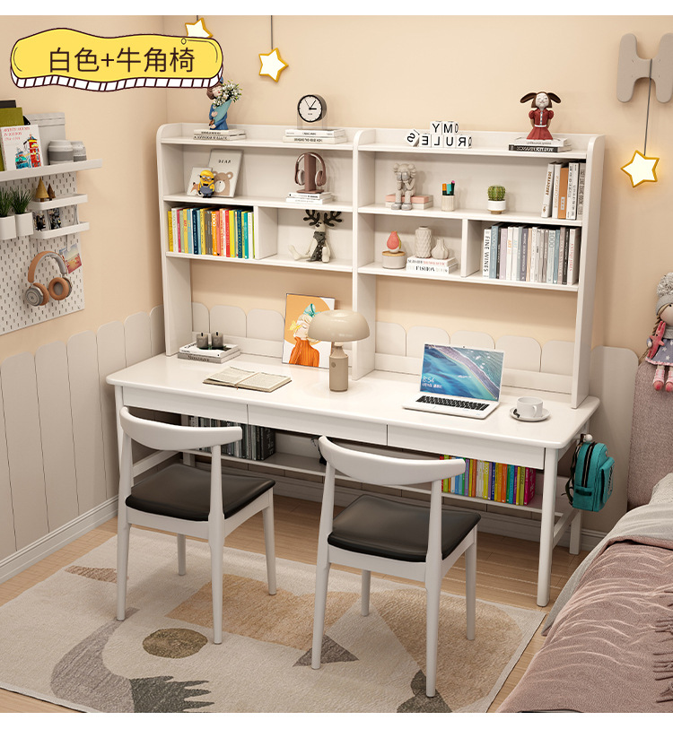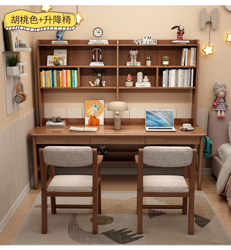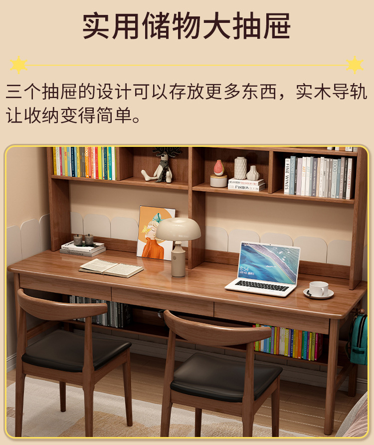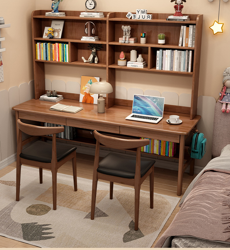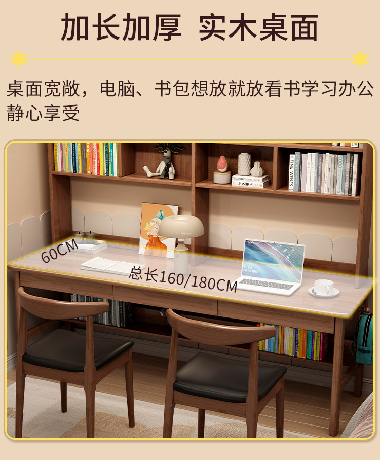 商品名称: 实木双人书桌书架一体电脑桌长条桌多人学习写字桌