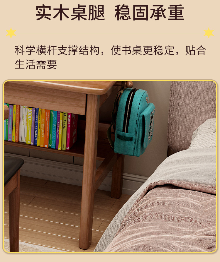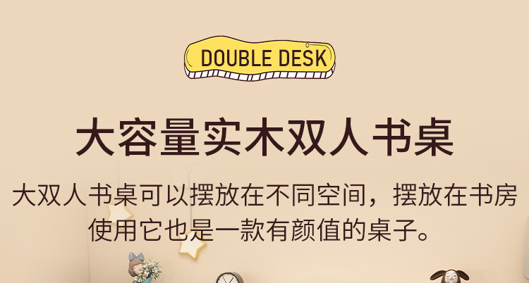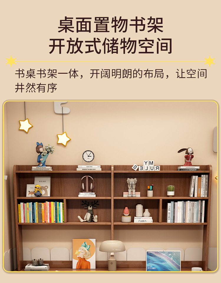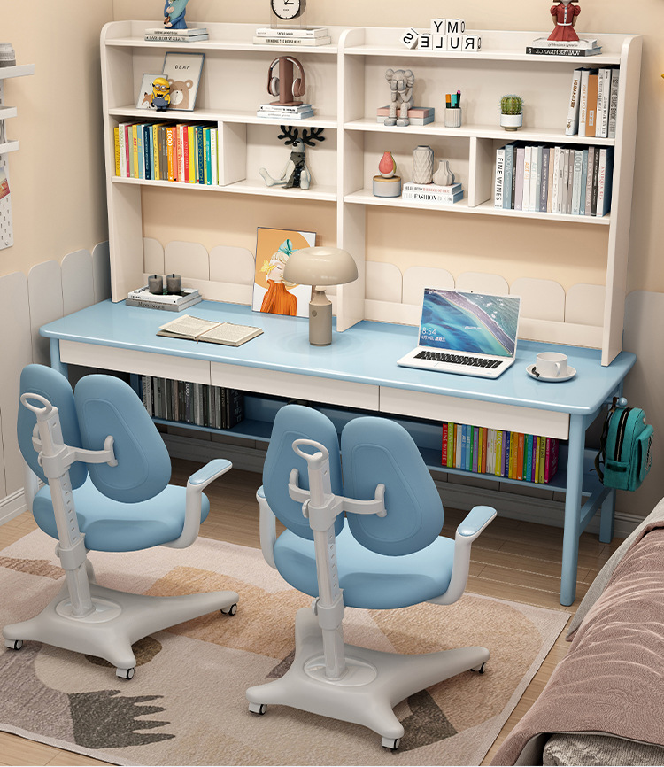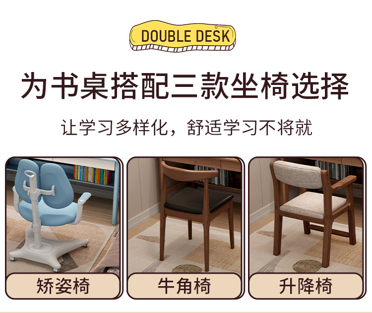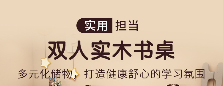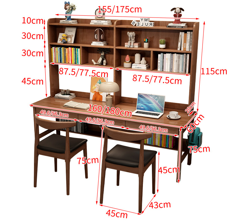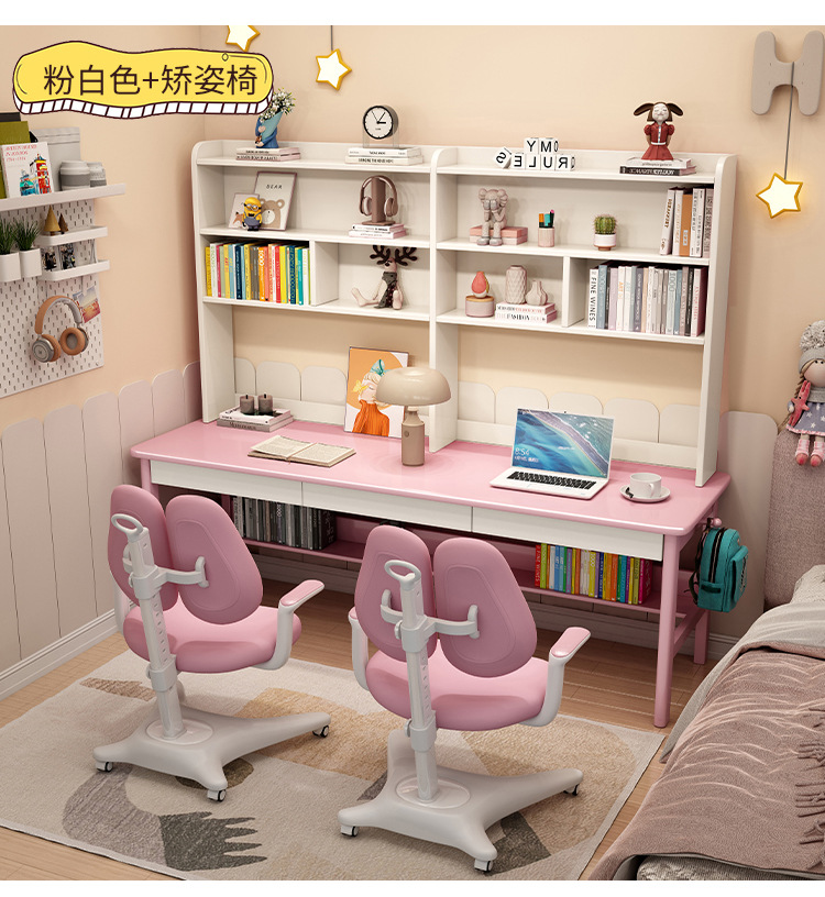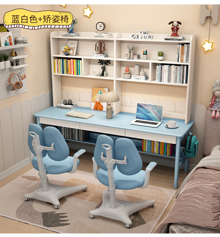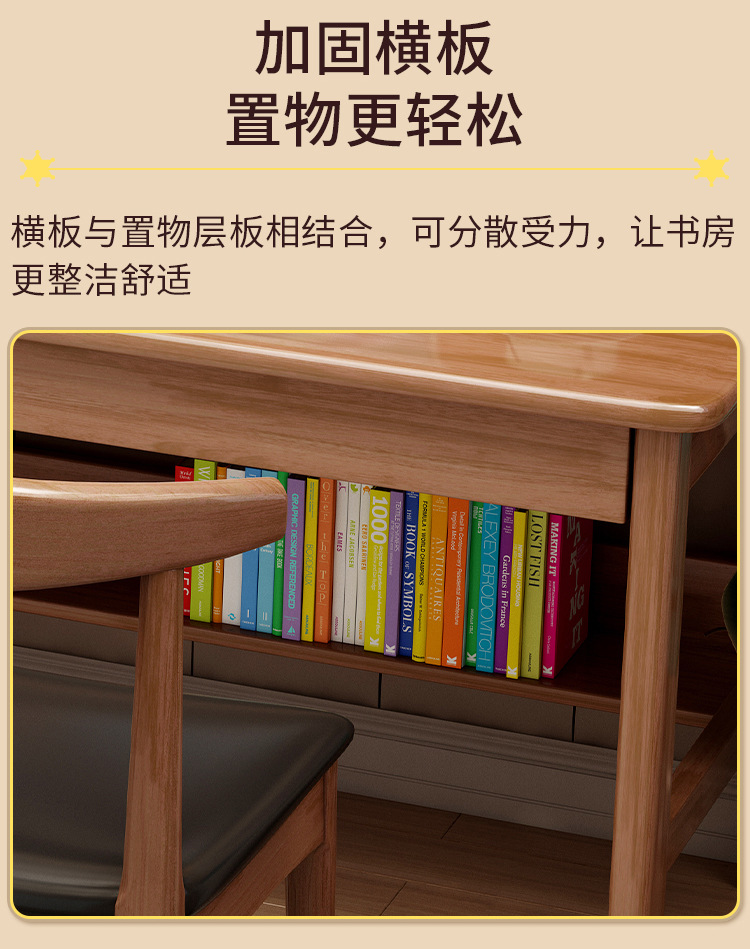 商品名称: 实木双人书桌书架一体电脑桌长条桌多人学习写字桌