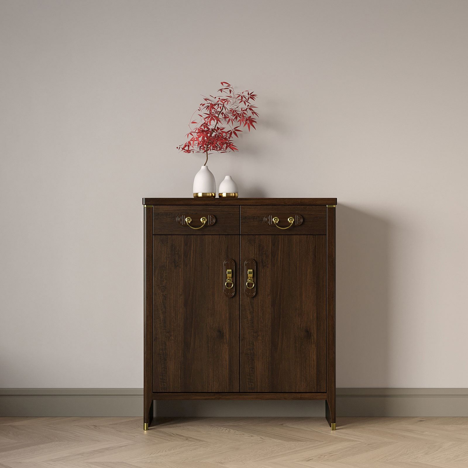 商品名称: 实木二门鞋柜中式储物柜隔断门厅柜收纳玄关鞋柜