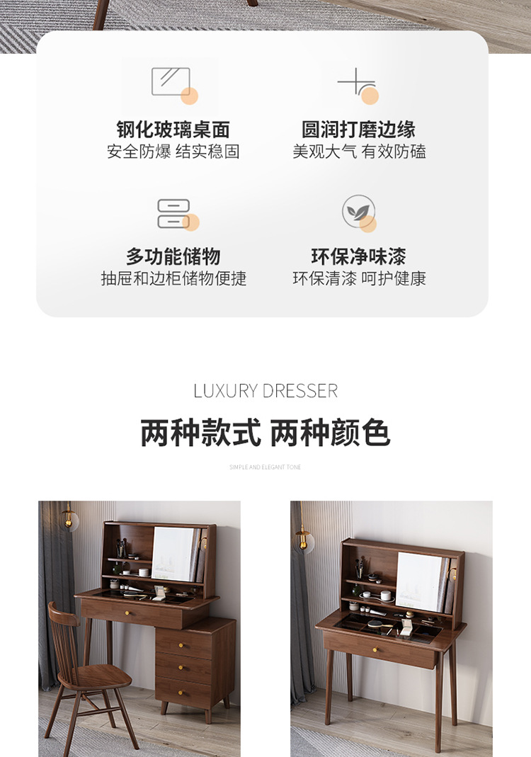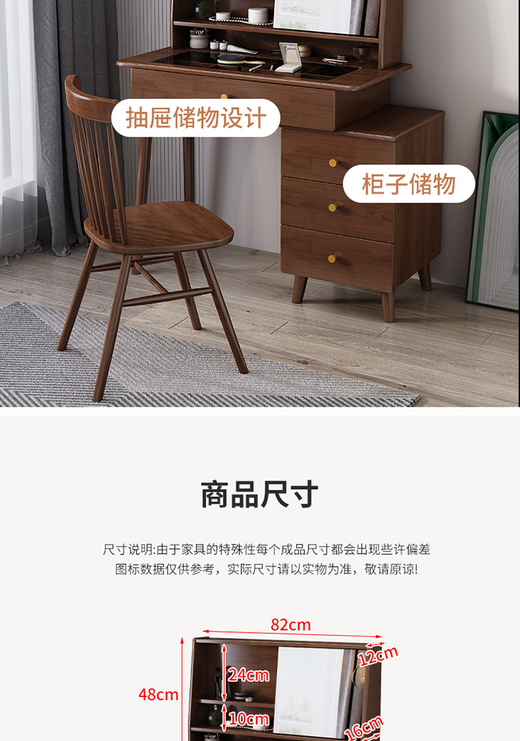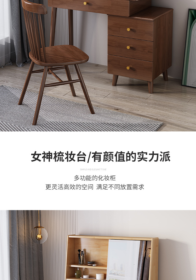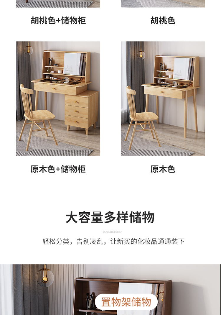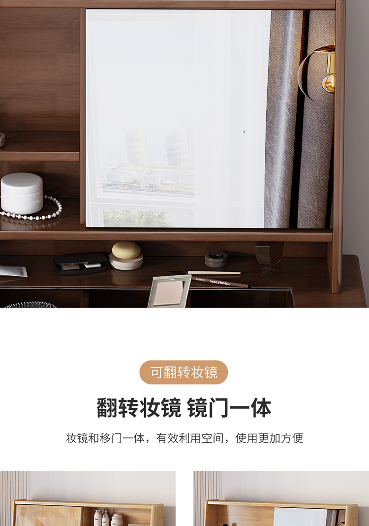 商品名称: 翻转镜妆台实木梳妆台化妆桌带斗柜一体可伸缩化妆台