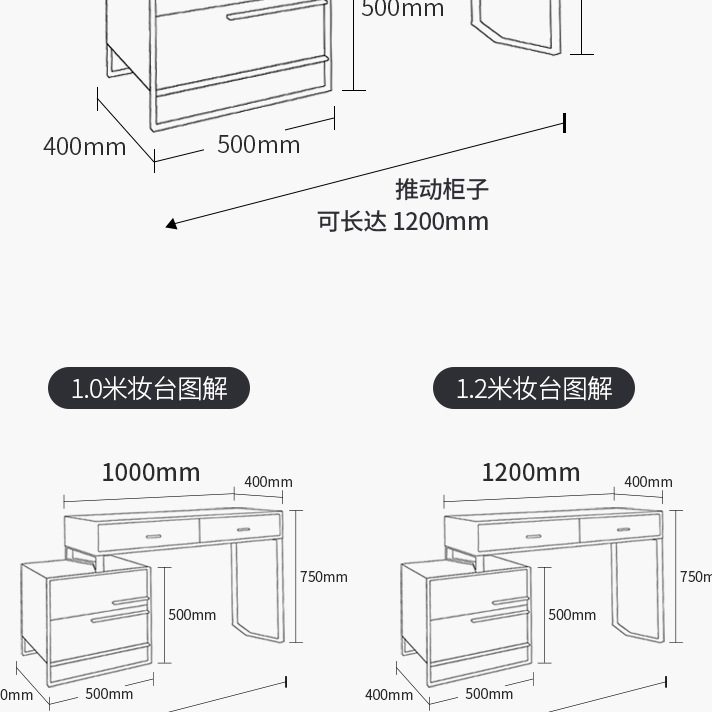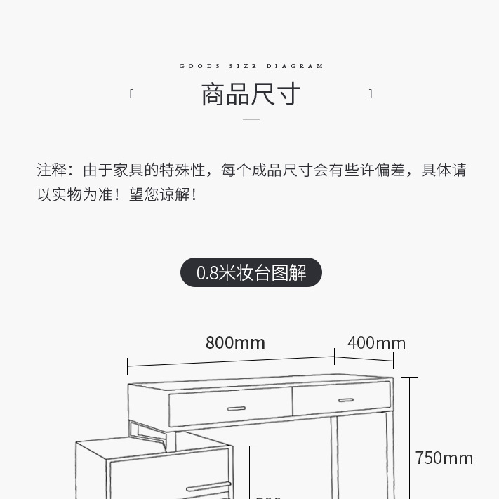 磷贝 轻奢梳妆台卧室收纳柜一体化妆台实木化妆桌101 750*1000*400