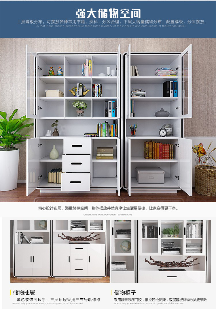 商品名称: 白黑二门书柜书架置物柜文件柜办公资料柜