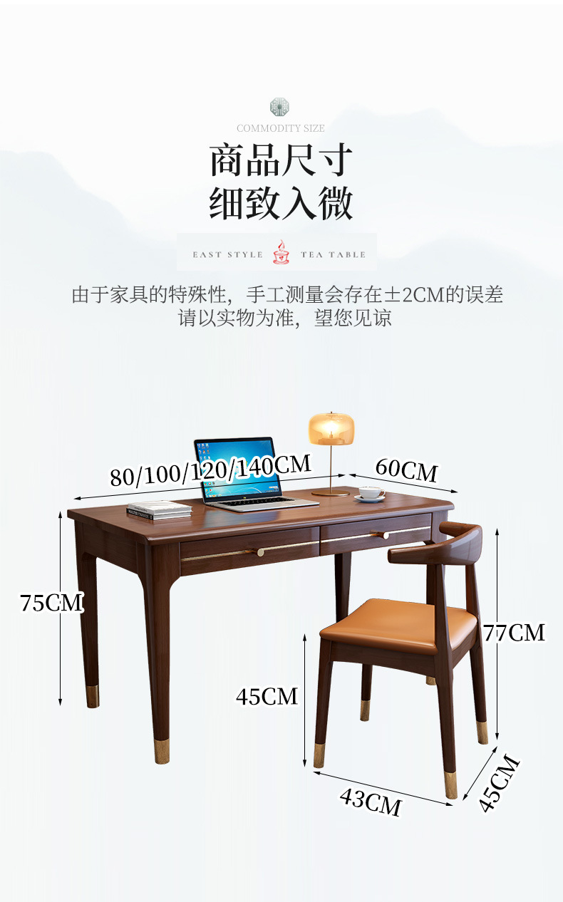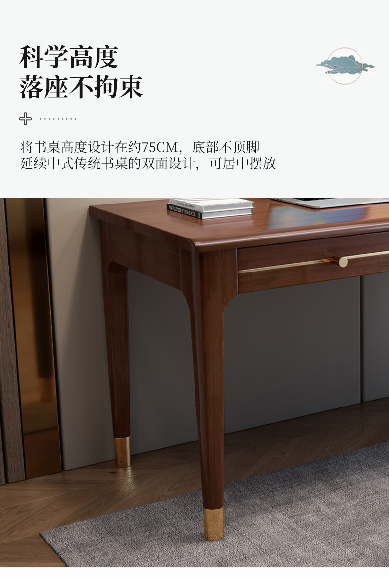 磷贝 新中式实木书桌电脑桌学习桌写字桌家用办公桌 750*800*600