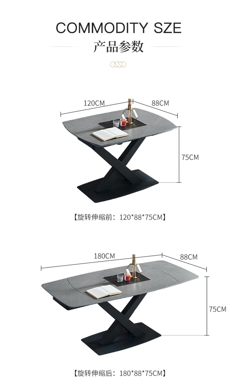 商品名称: 功能餐台意式简约岩板餐桌创意旋转伸缩多用饭桌