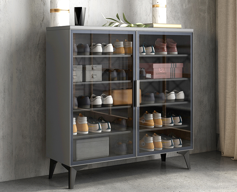 商品名称: 灰色二门鞋柜储物柜收纳柜玻璃门