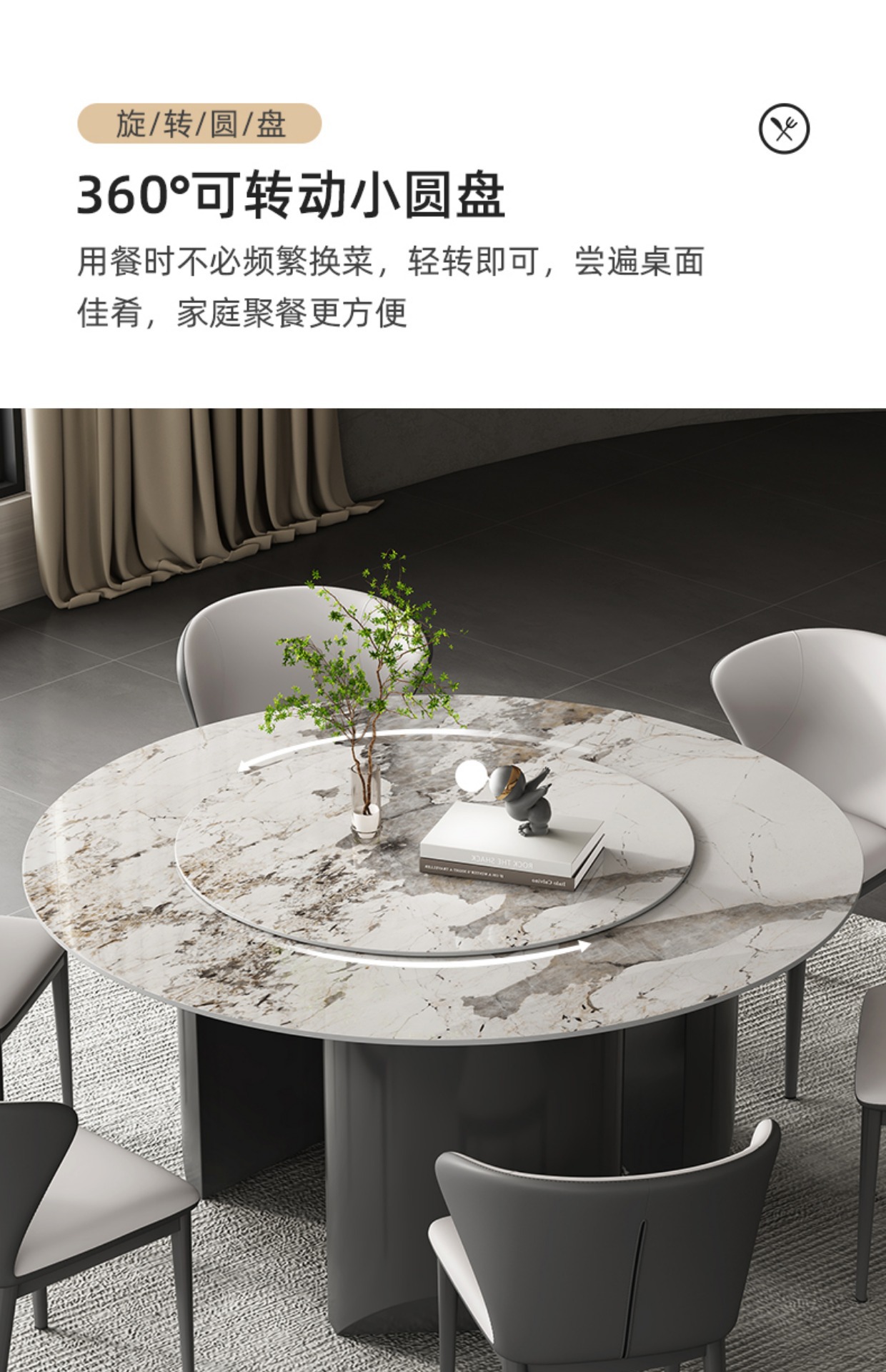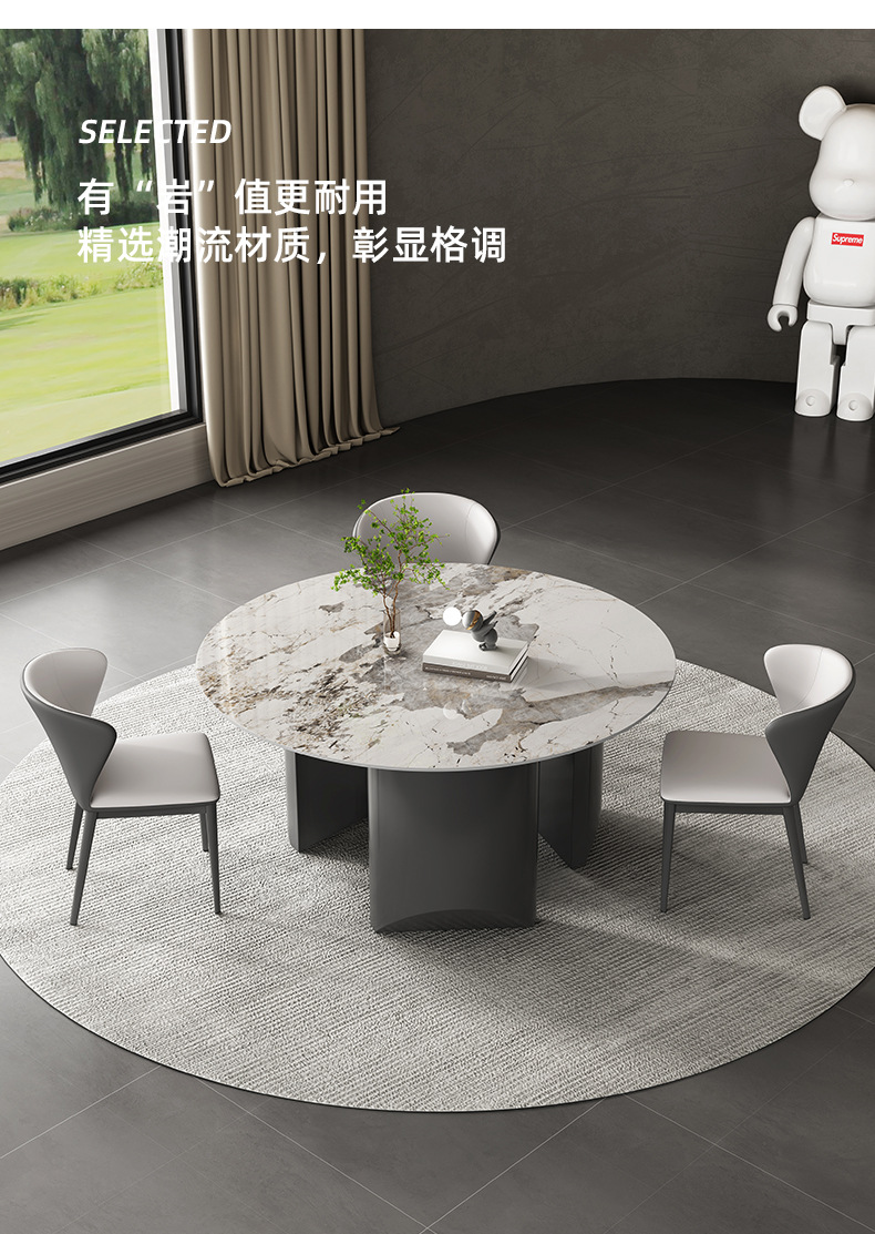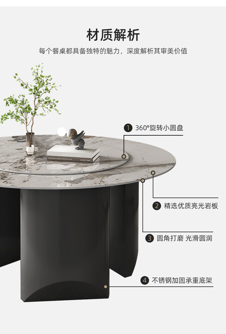 商品名称: 立柱式岩板餐桌吃饭桌圆餐桌