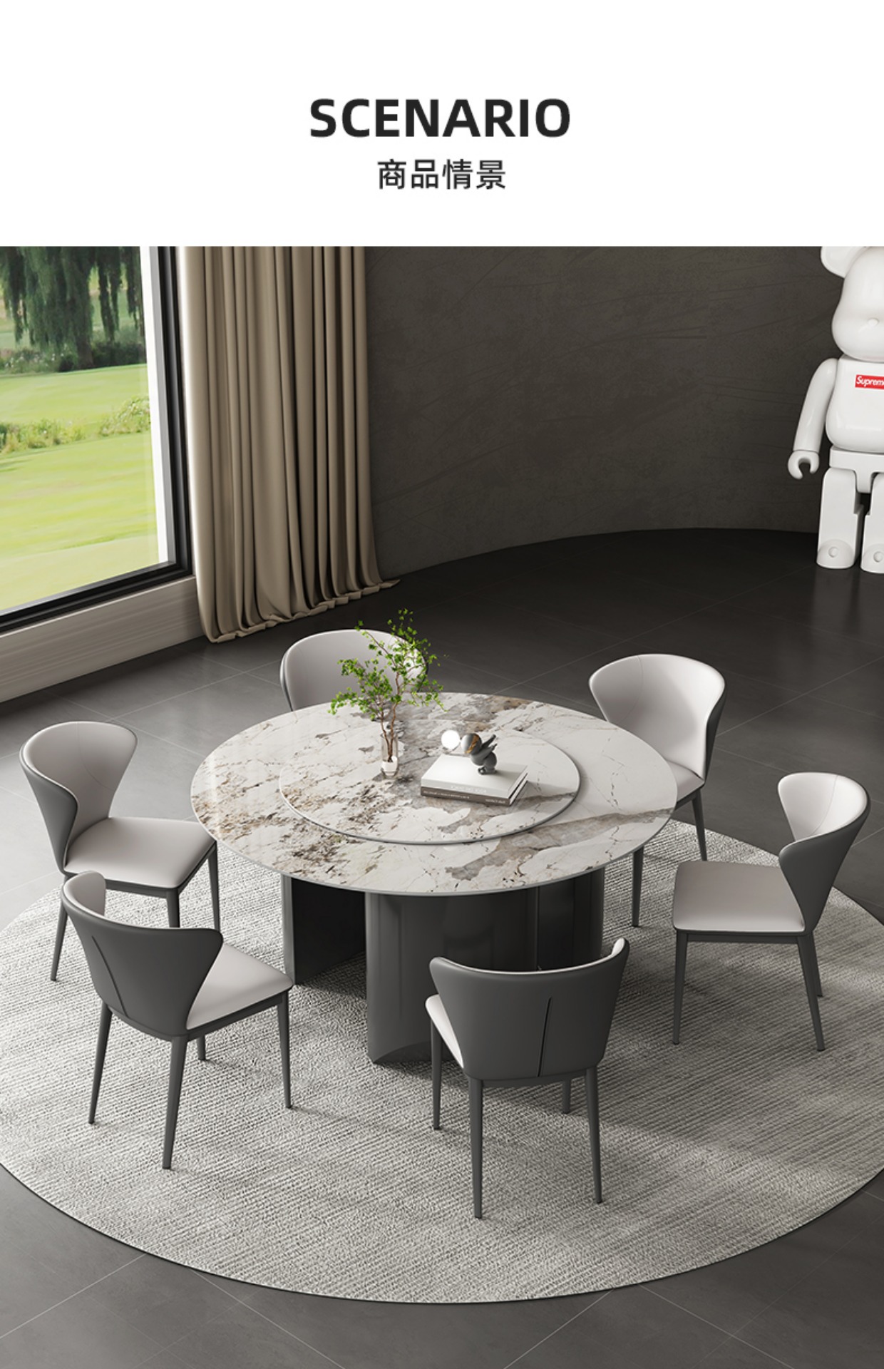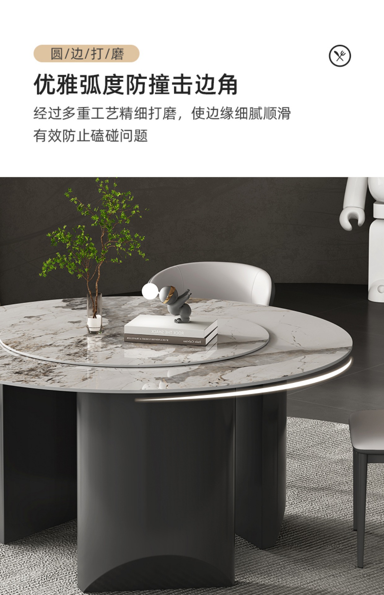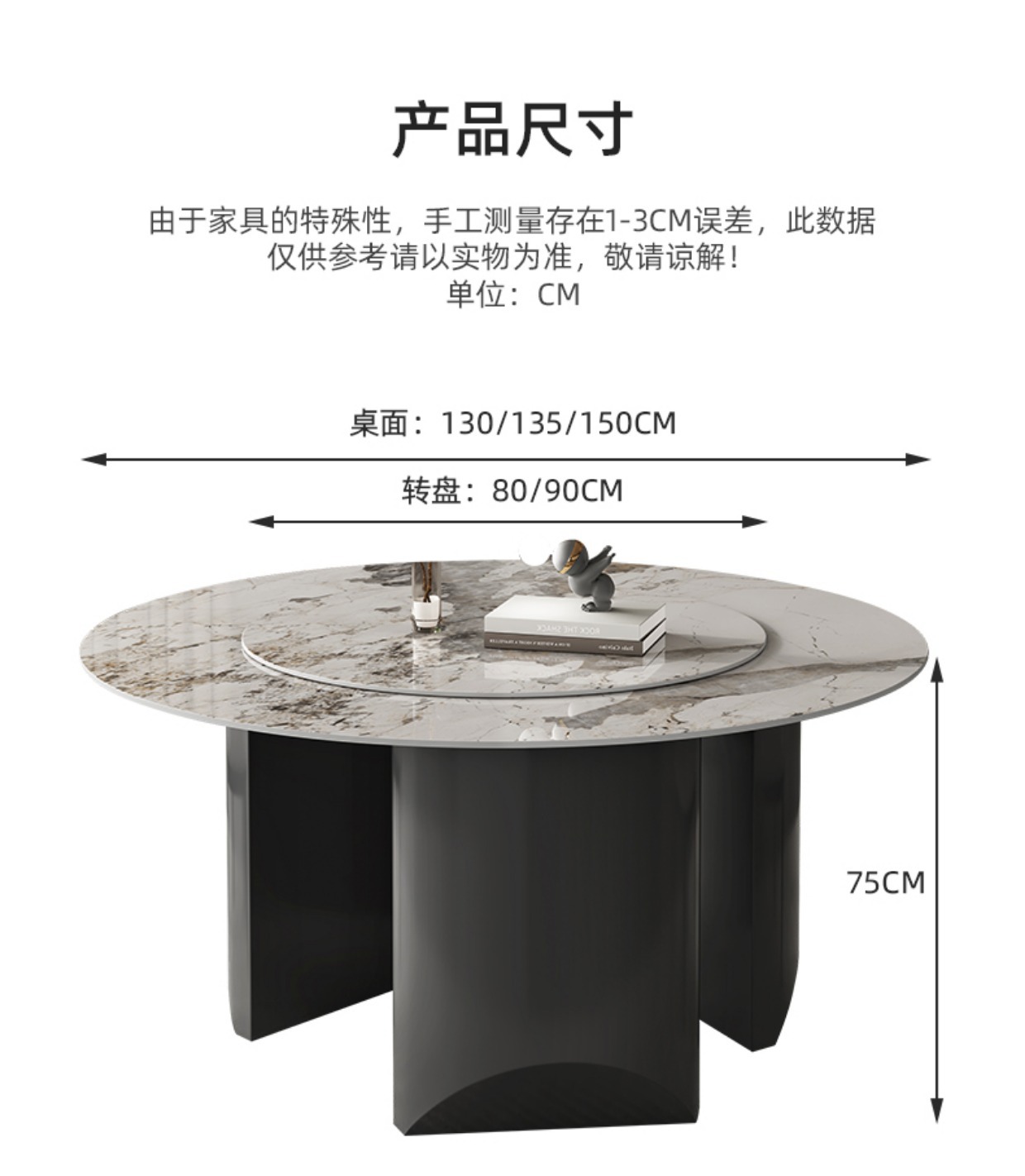 商品名称: 立柱式岩板餐桌吃饭桌圆餐桌