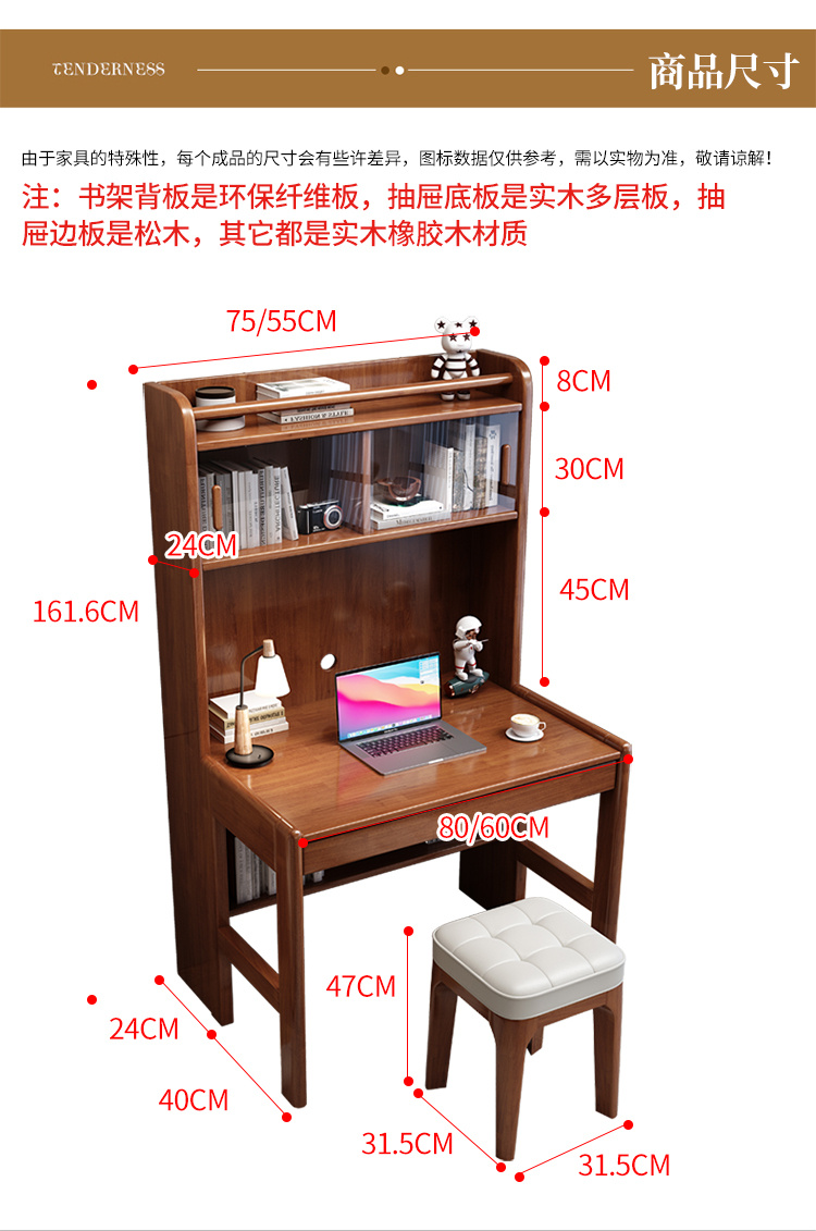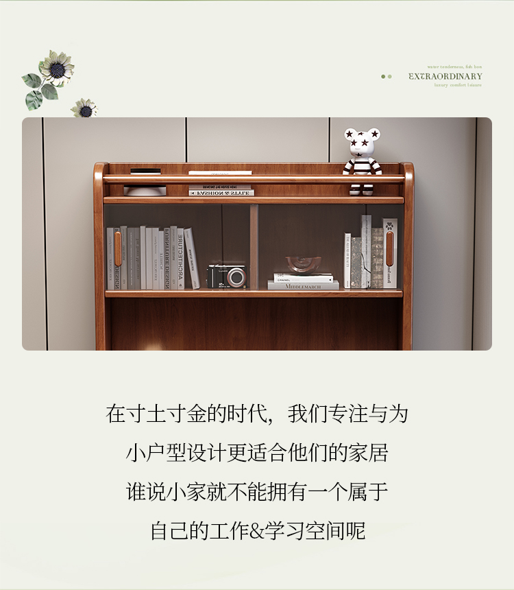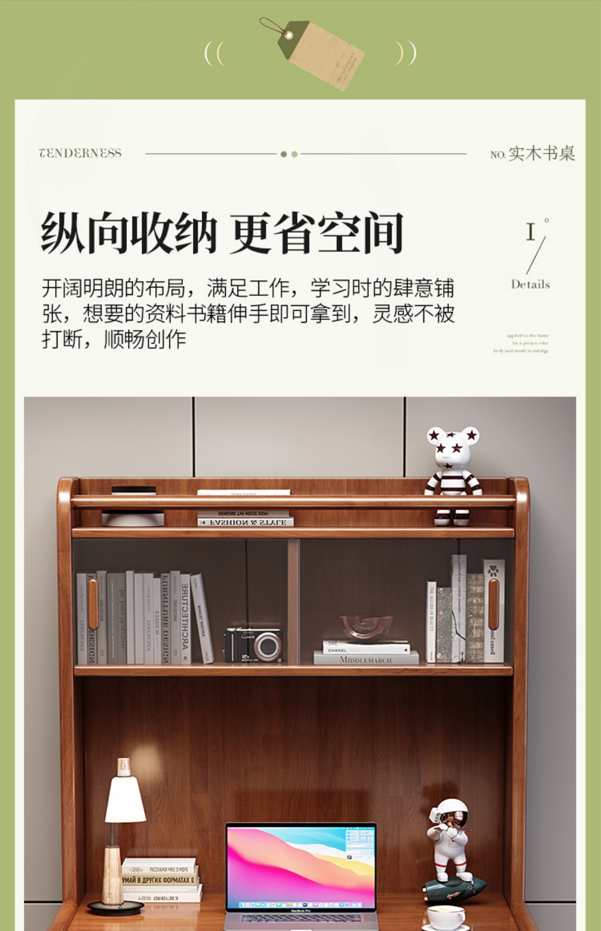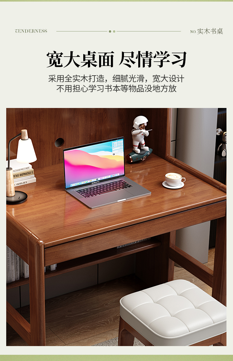 商品名称: 小户型实木书桌书架一体学习桌写字桌电脑桌