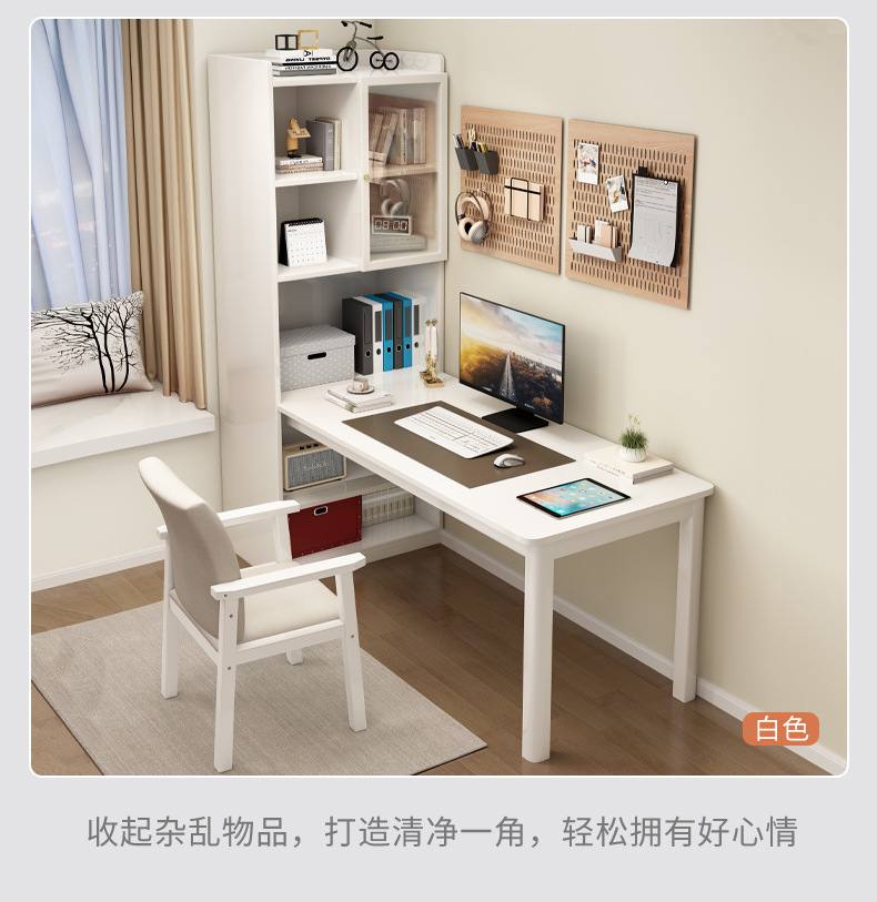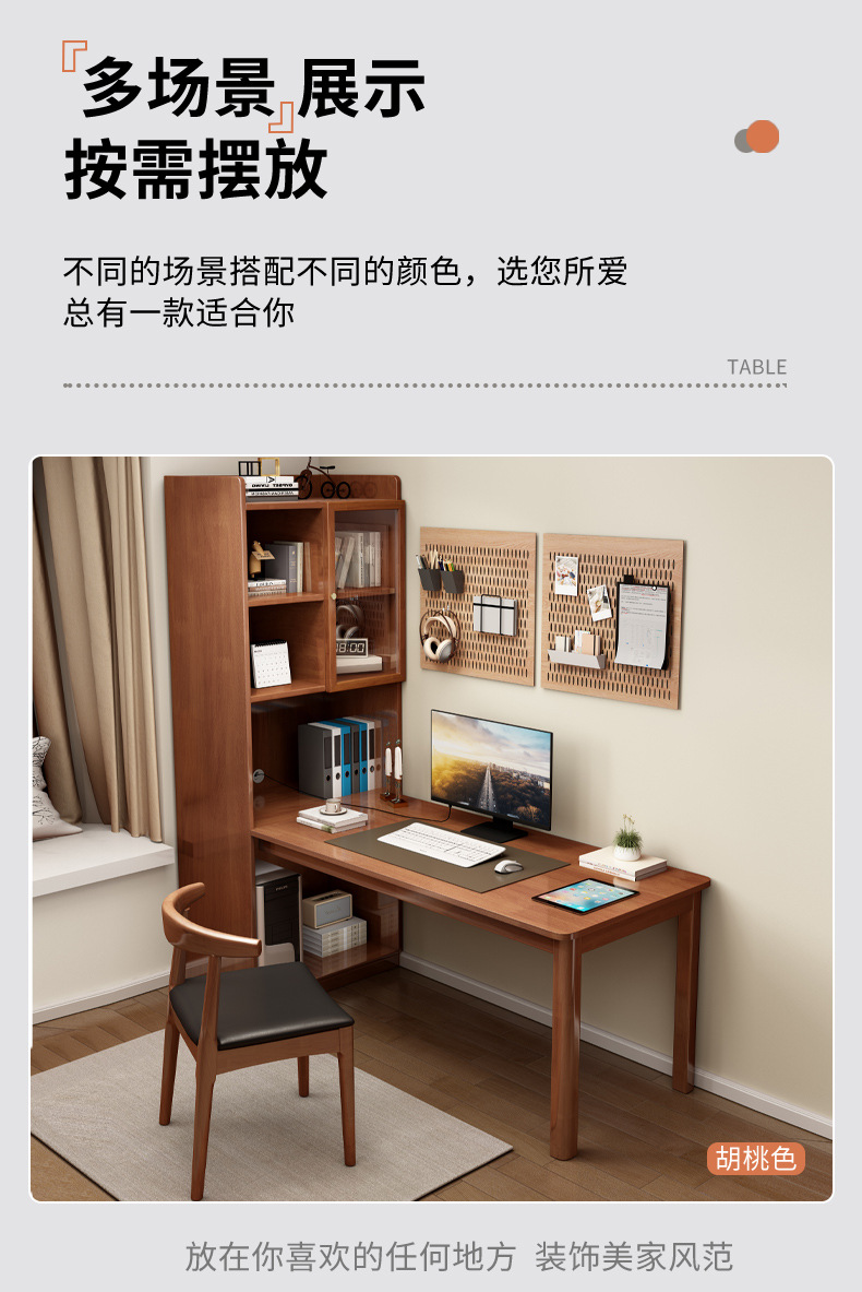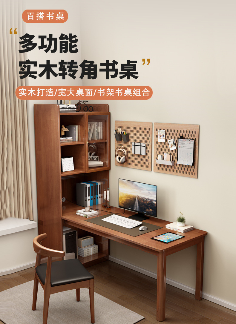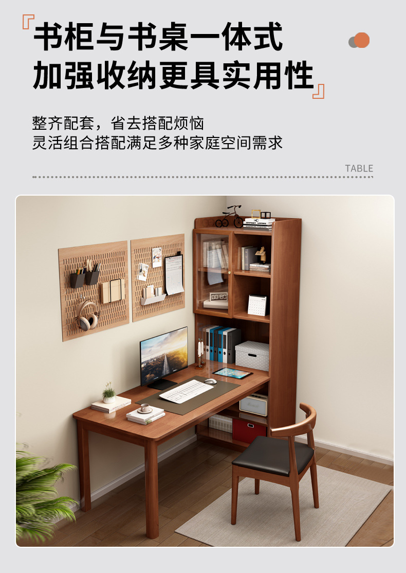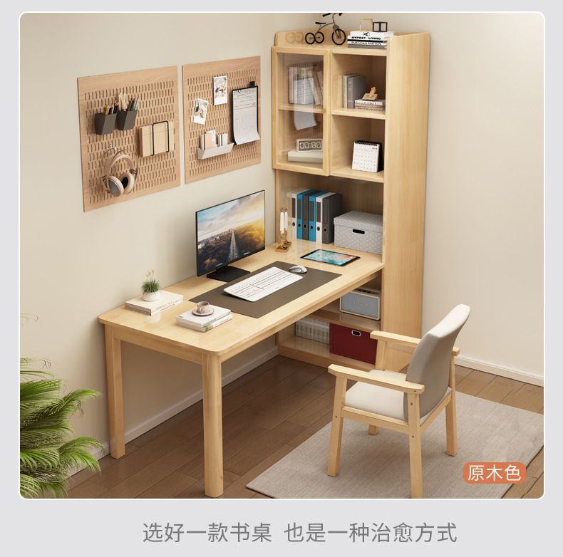 商品名称: 实木转角书桌书架组合一体书柜学习桌家用电脑桌