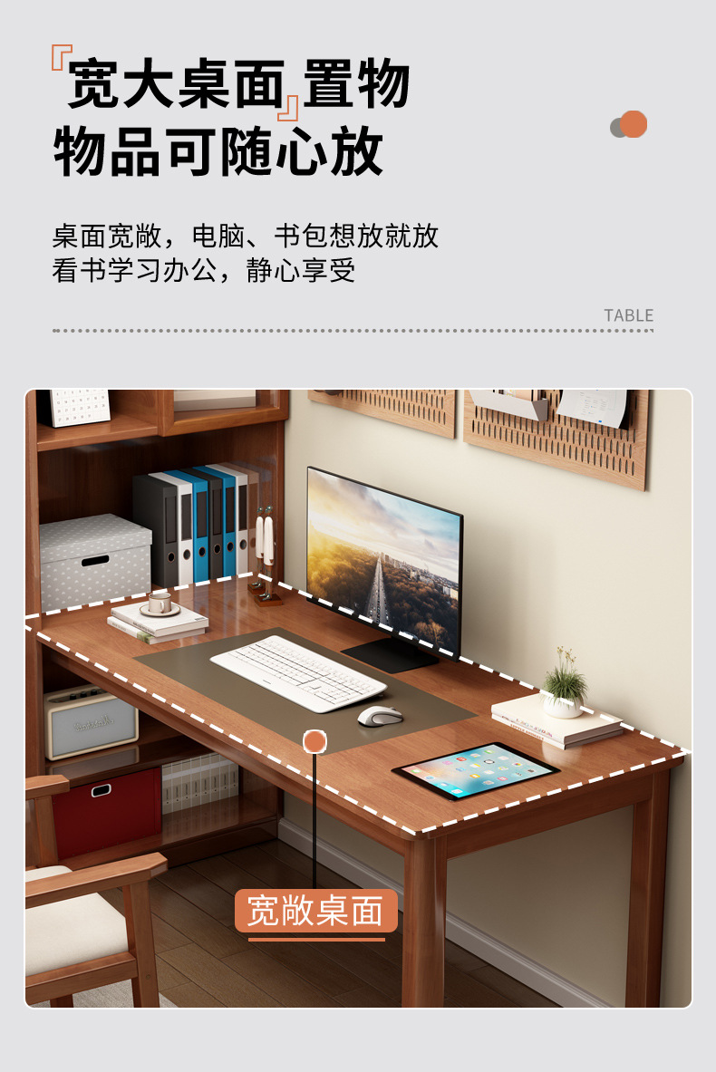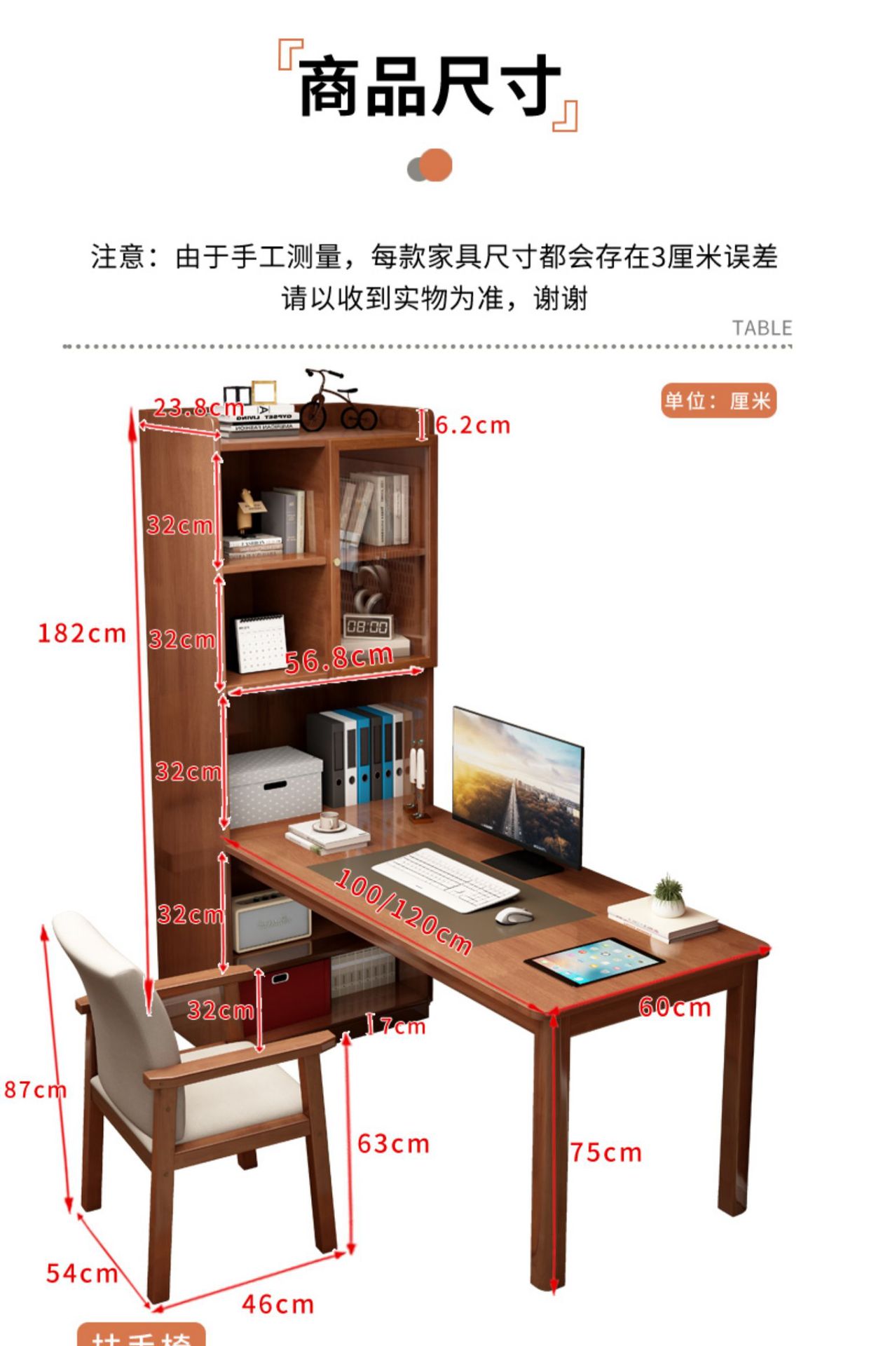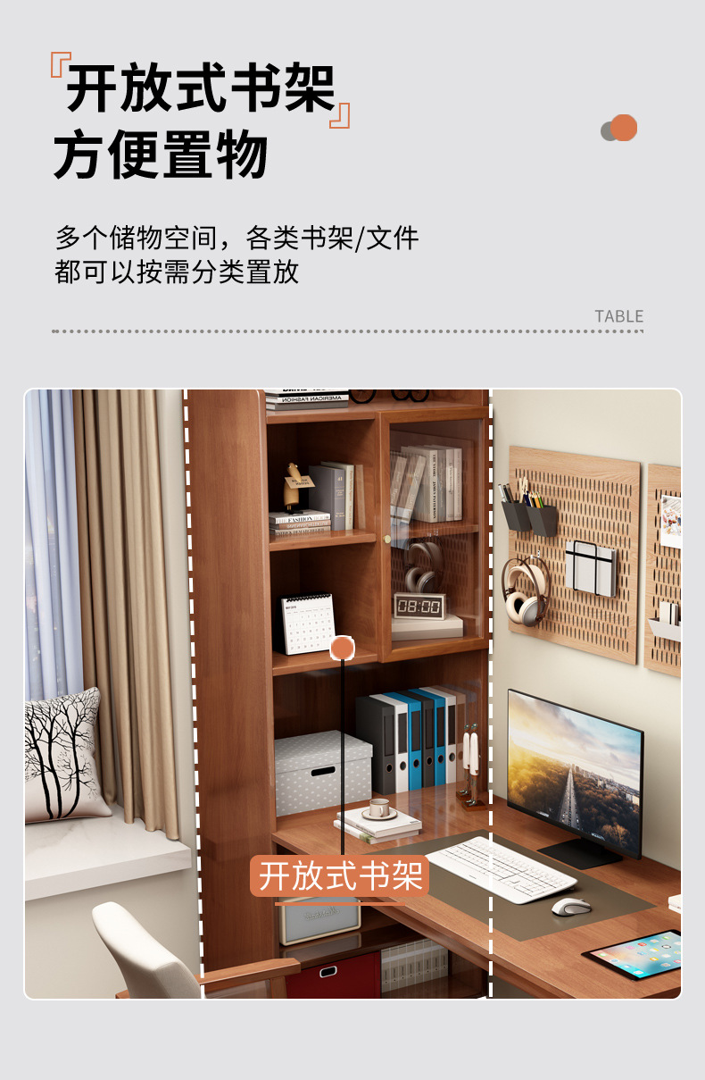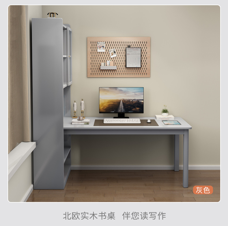 商品名称: 实木转角书桌书架组合一体书柜学习桌家用电脑桌