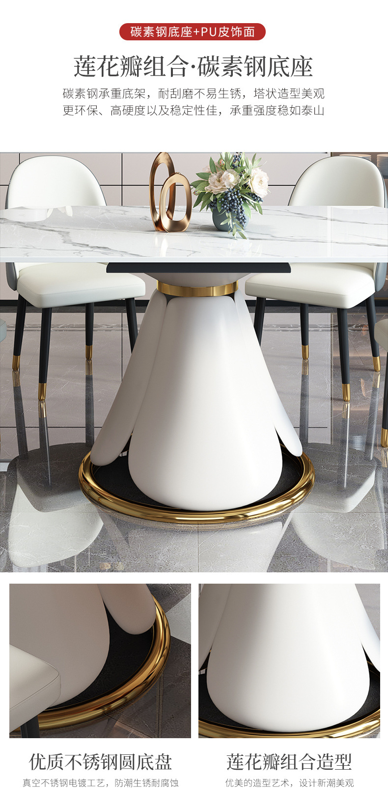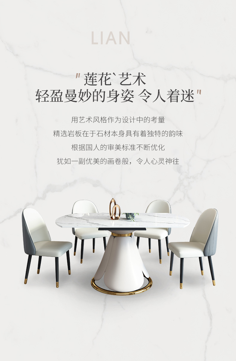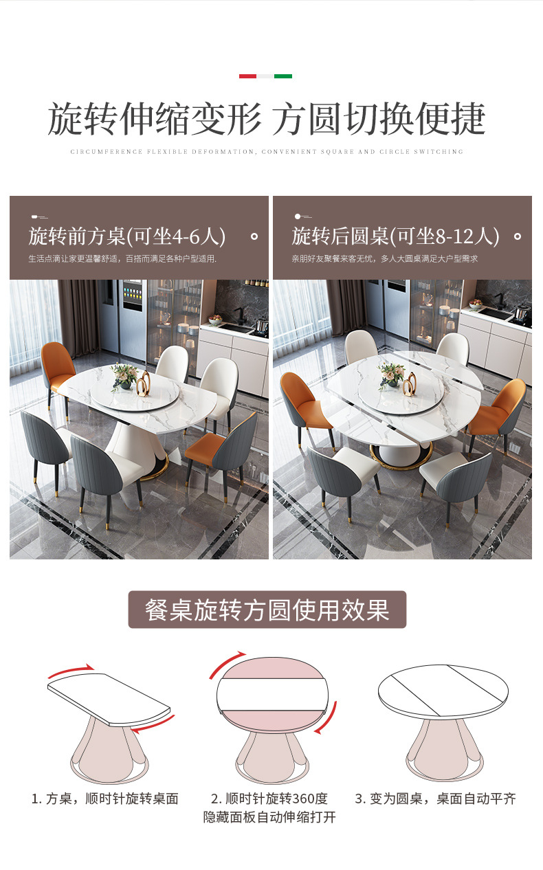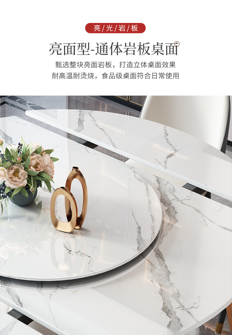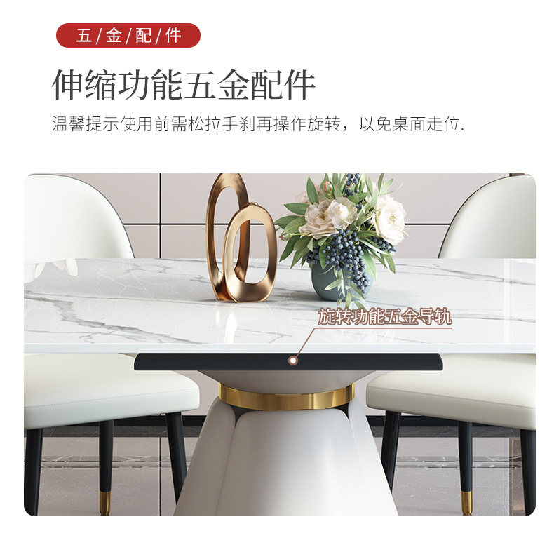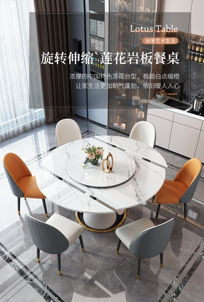 商品名称: 荷花岩板餐桌跳台拉台伸缩折叠方圆两用餐桌饭桌