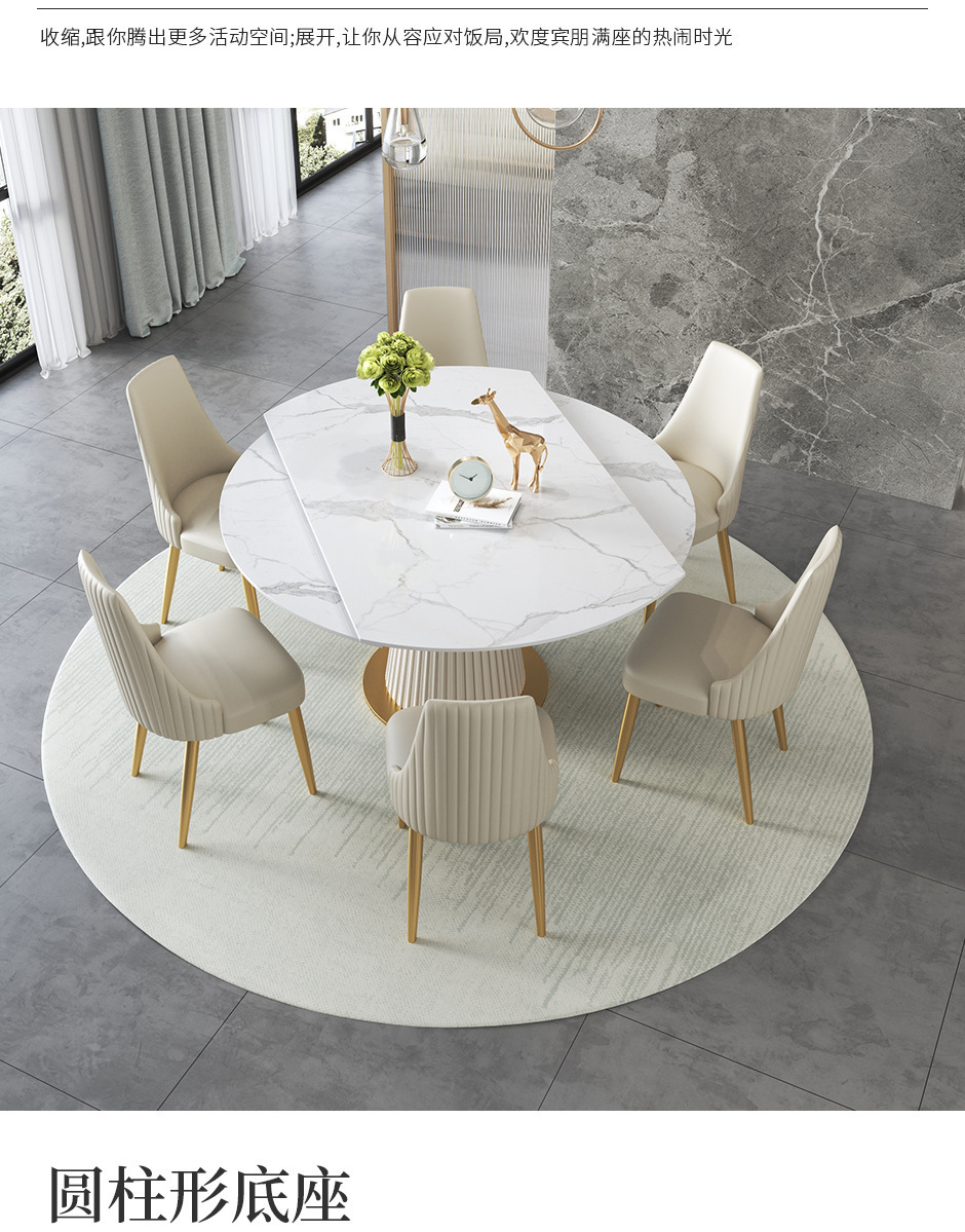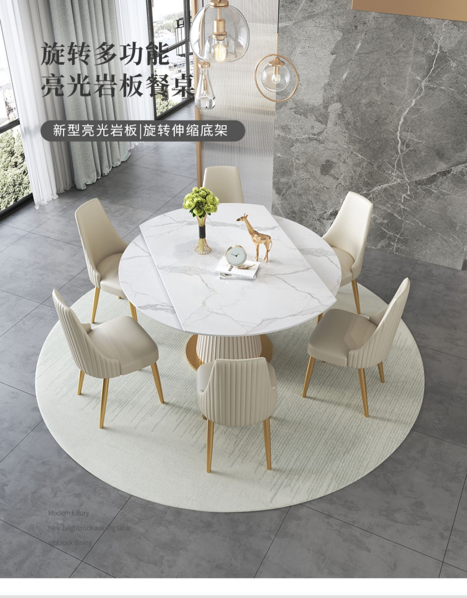 商品名称: 简约岩板餐桌方圆两用旋转折叠伸缩餐桌饭桌